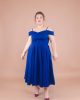 Платье миди с низкими плечами и складками для женщин — цвет синий, разные размеры до 54, эластичная ткань из хлопка и полиэстера