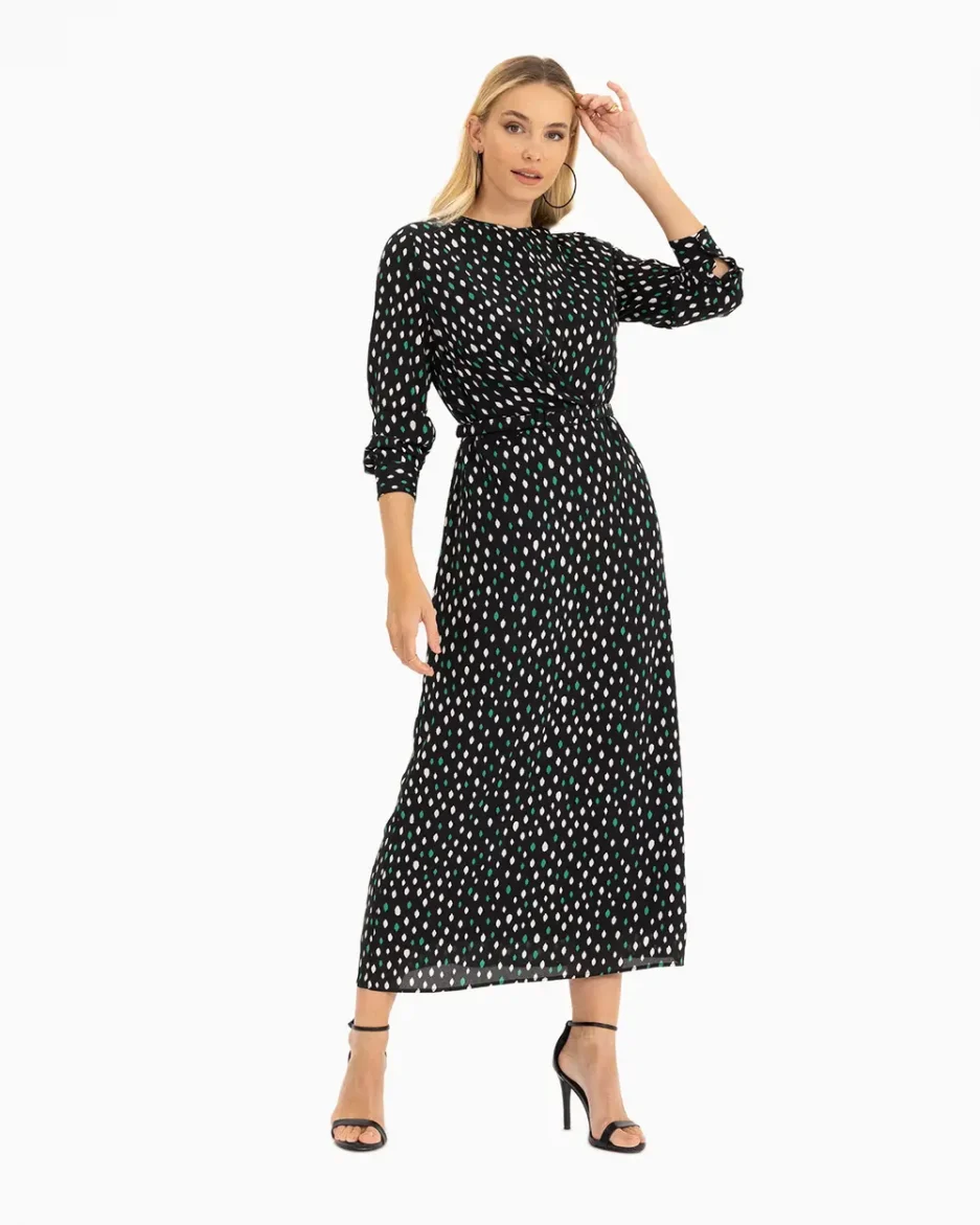 Эта элегантная одежда с яркими точками на черном фоне обязательно привлечет внимание. Линия талии с поясом обеспечивает идеальное прилегание к фигуре, подчеркивая её достоинства. Длинные рукава и полный длины силуэт делают платье отличным выбором для создания современного образа. Любая женщина сможет стильно дополнить наряд высокими каблуками.Компания SEÇİL STORE предлагает вам эту уникальную модель платья, в которой вы будете чувствовать себя уверенно и привлекательно. Изготовленное из материала с высоким содержанием полиэстера, оно легко поддерживает форму и подходит для различных случаев. Будьте уверены, это платье станет неотъемлемой частью вашего гардероба, сочетая комфорт и стиль.