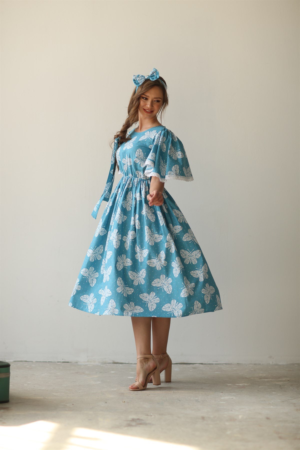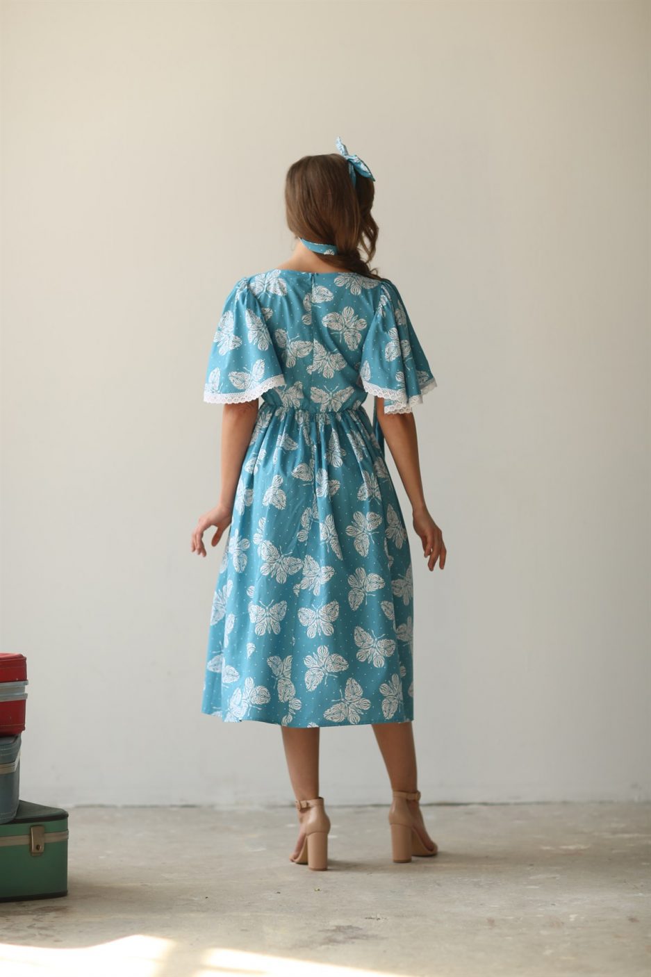 Платье с голубыми бабочками из 100% хлопкового поплина, размеры S-3XL, рекомендуем ручную стирку, длина 120 см