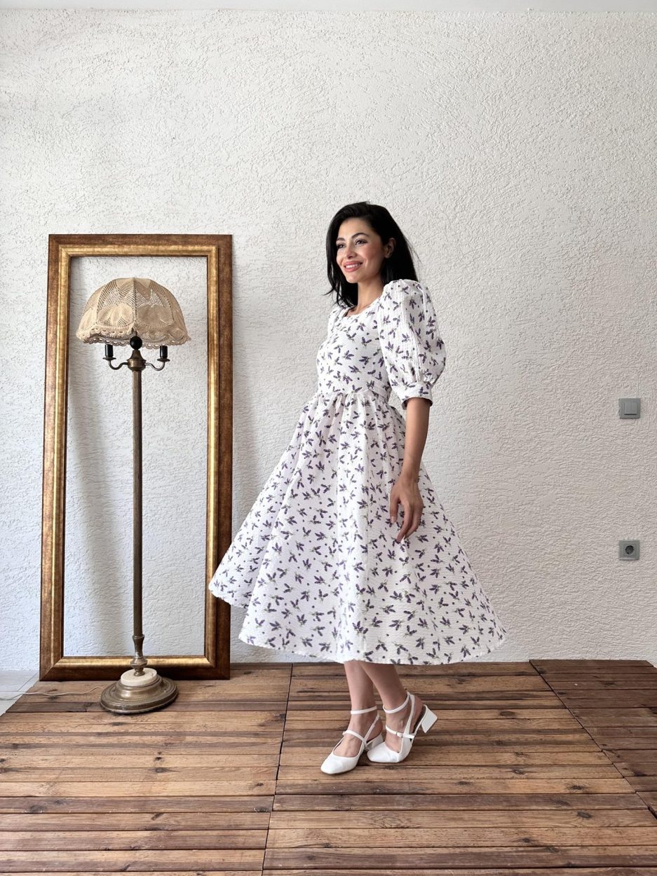 Платье с кльош из гофрированной ткани, лаванда, размер 40-42, длина 110 см, ручная стирка, стильный и комфортный выбор для женщин