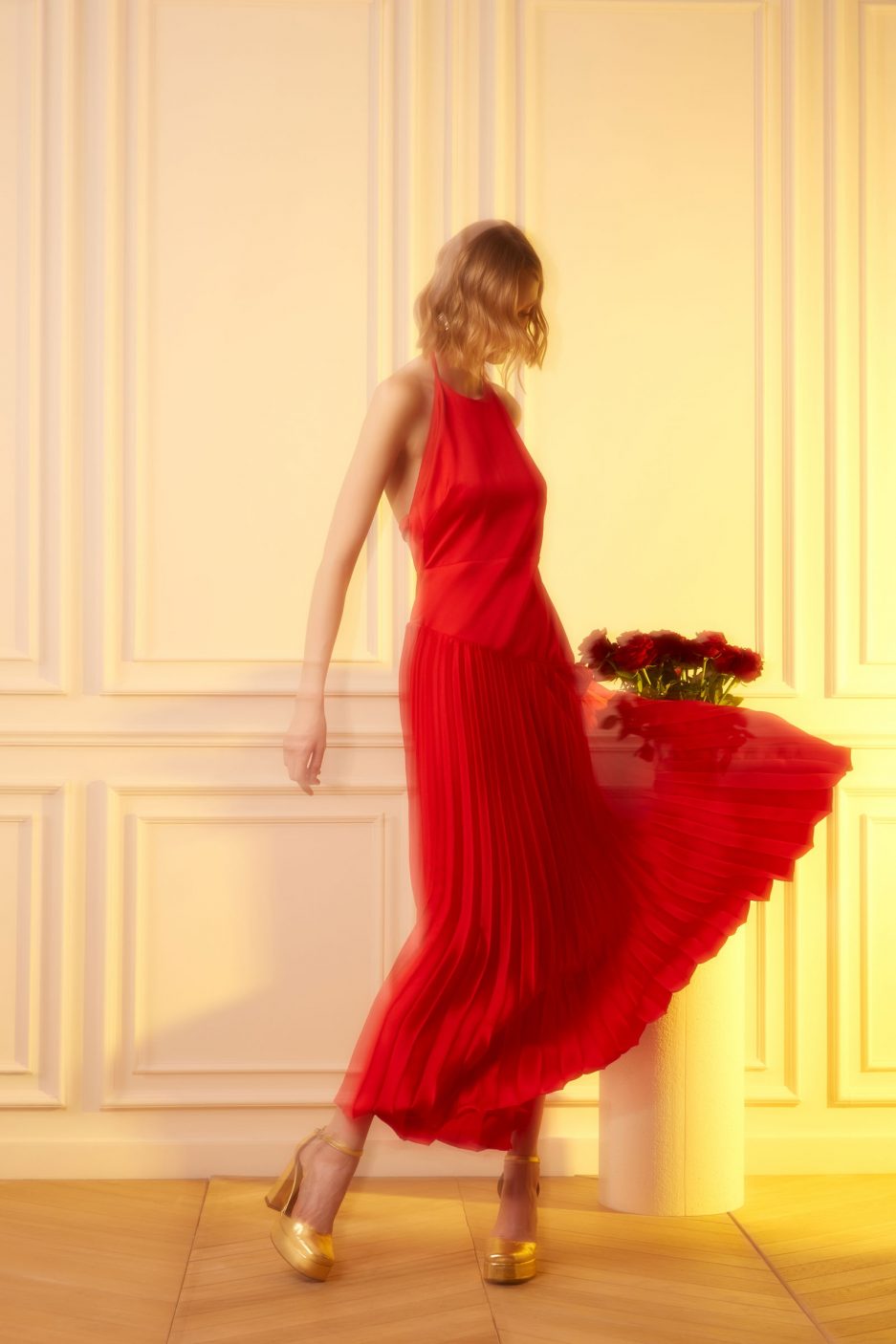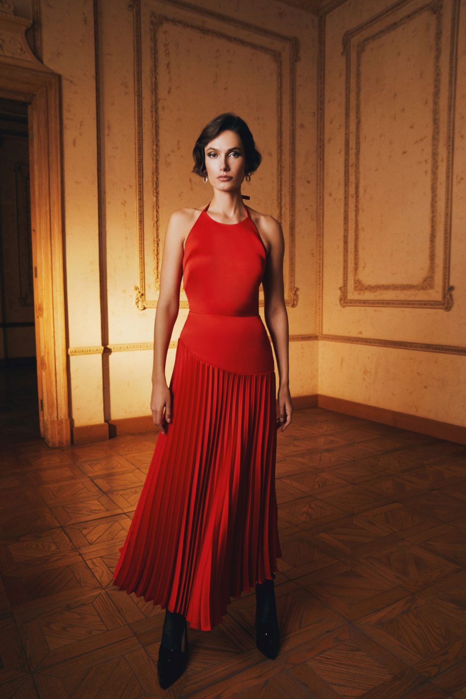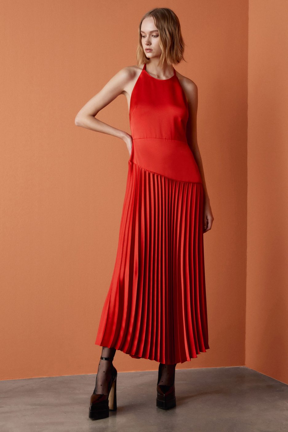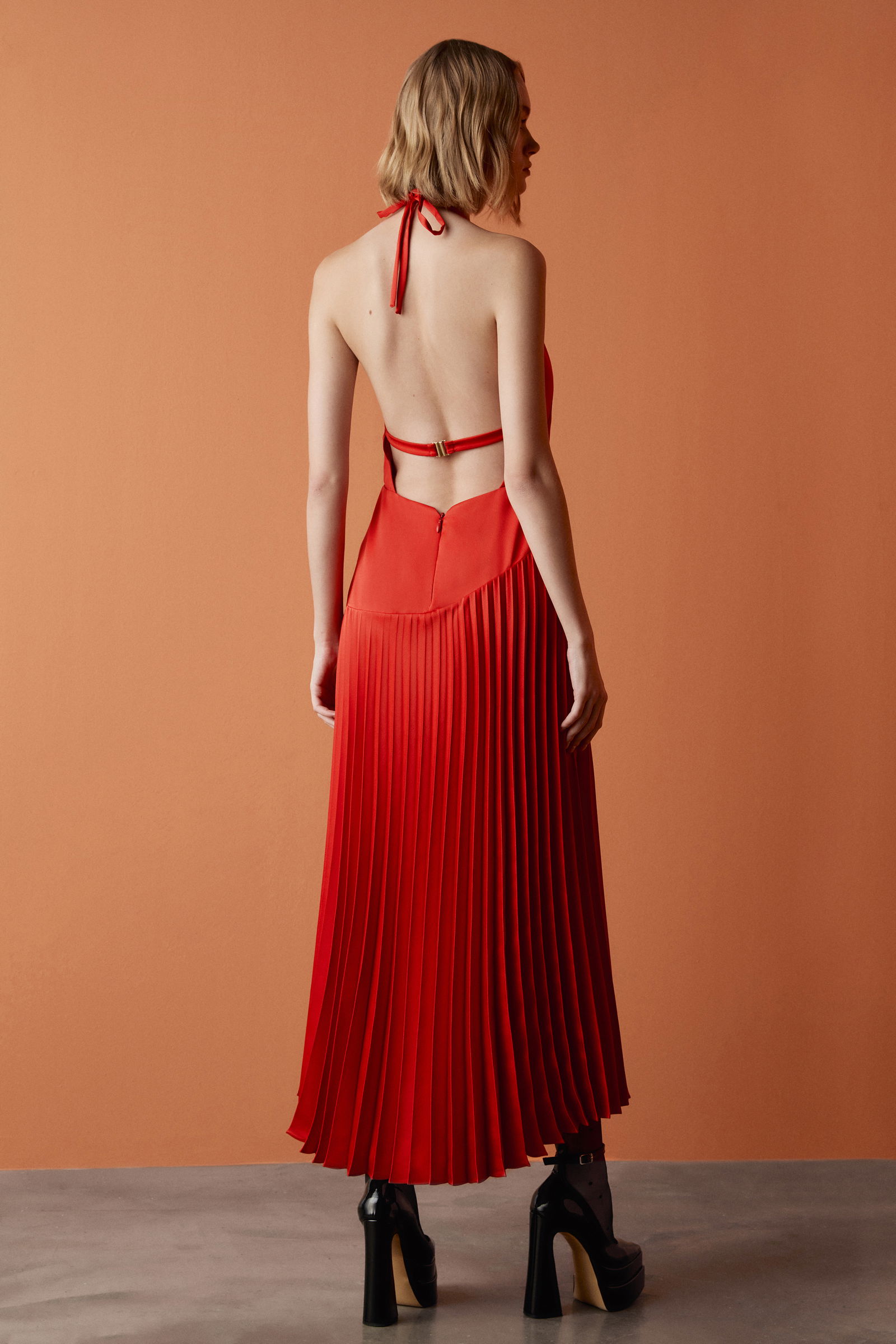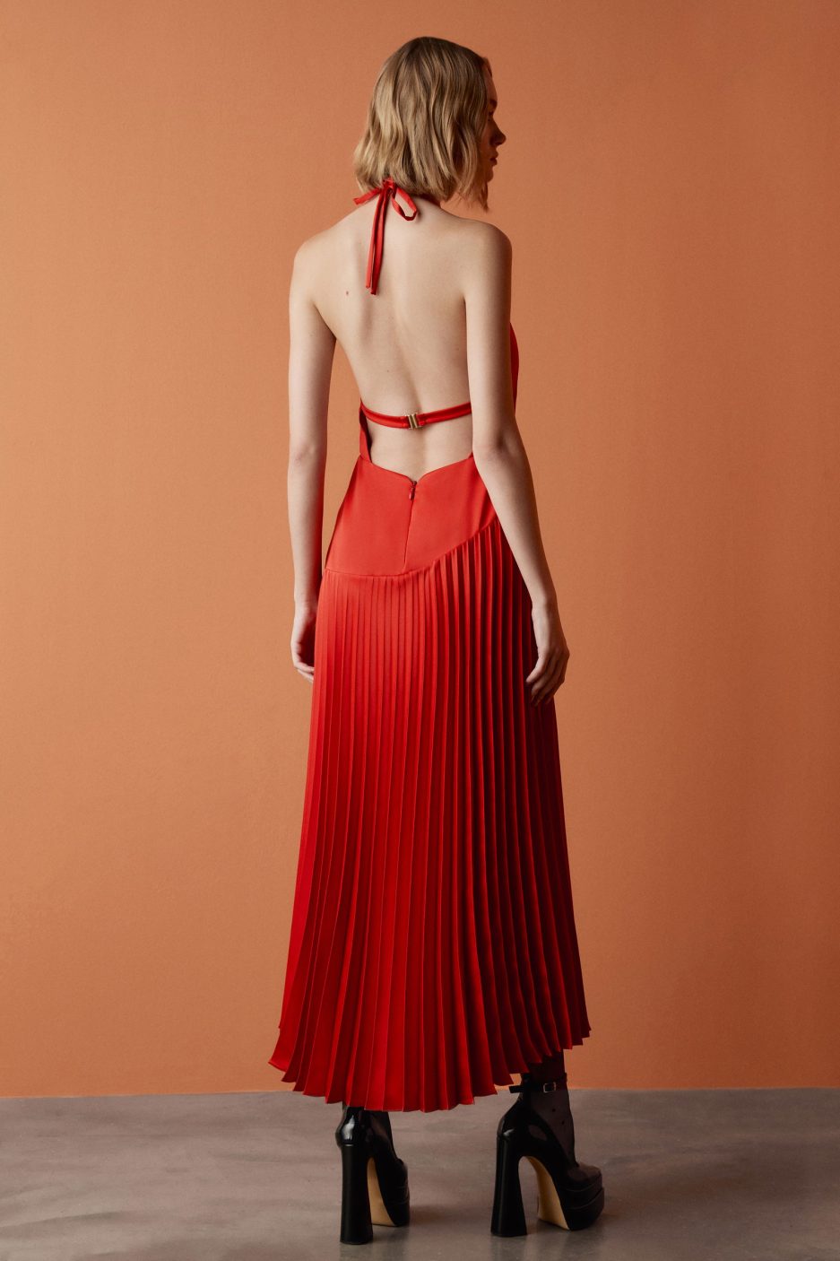 Платье с открытой спиной и складками, красное, Mert Aslan, 100% полиэстер, размеры XL и L
