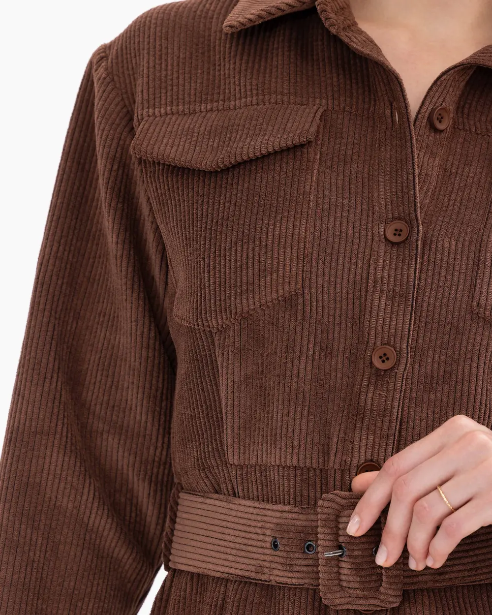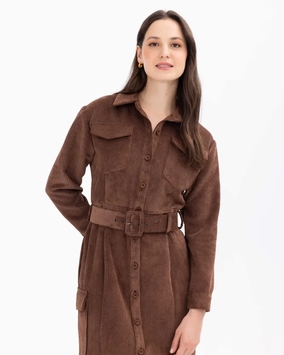 Платье с поясом и карманами из вельвета с пуговицами, элегантный и стильный выбор для утончённого образа