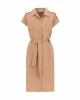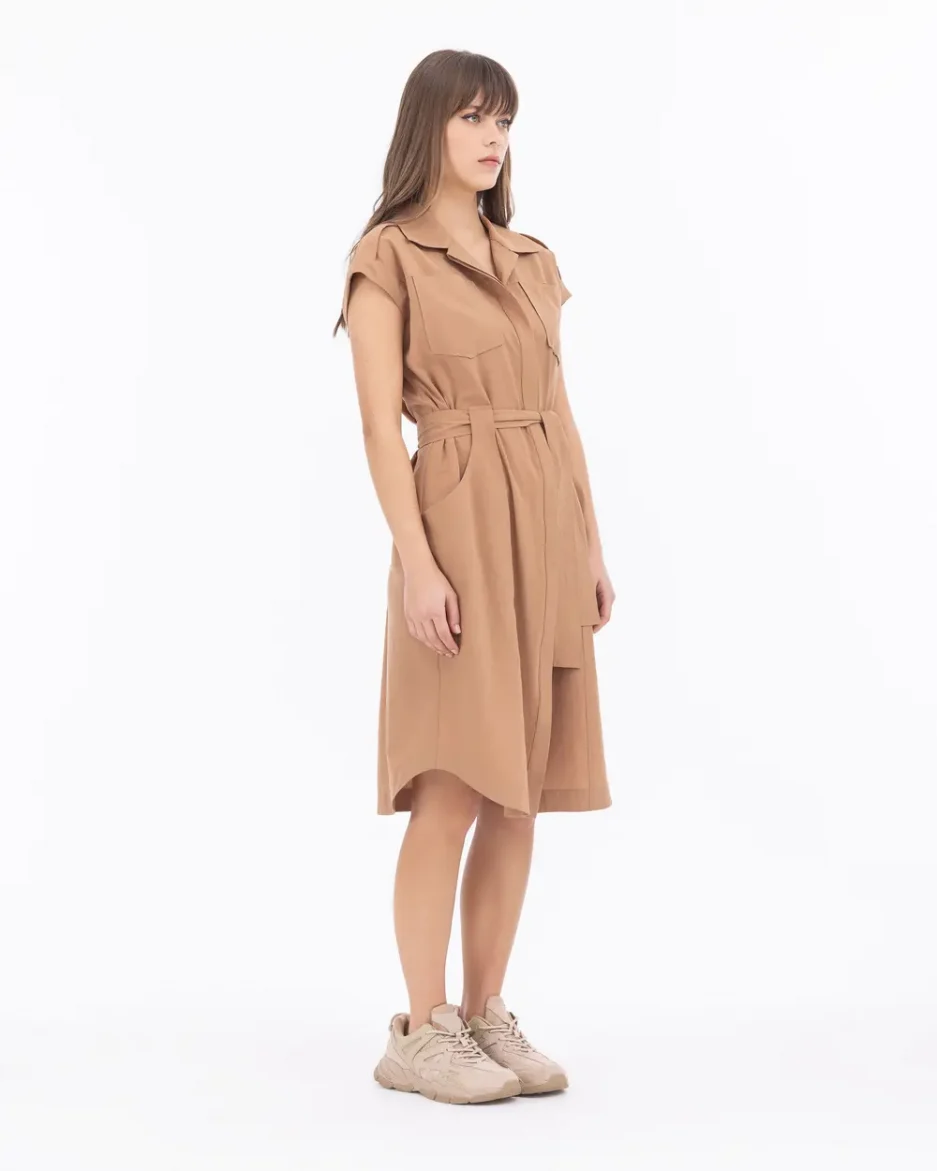 Платье с воротником в стиле рубашки и деталями на плечах, цвет камел, для модного и стильного образа.