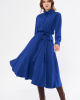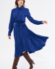 Платье-сорочка миди с длинным рукавом и поясом, цвет сакс, широкий резинок на талии, ткань не просвечивает, модель s