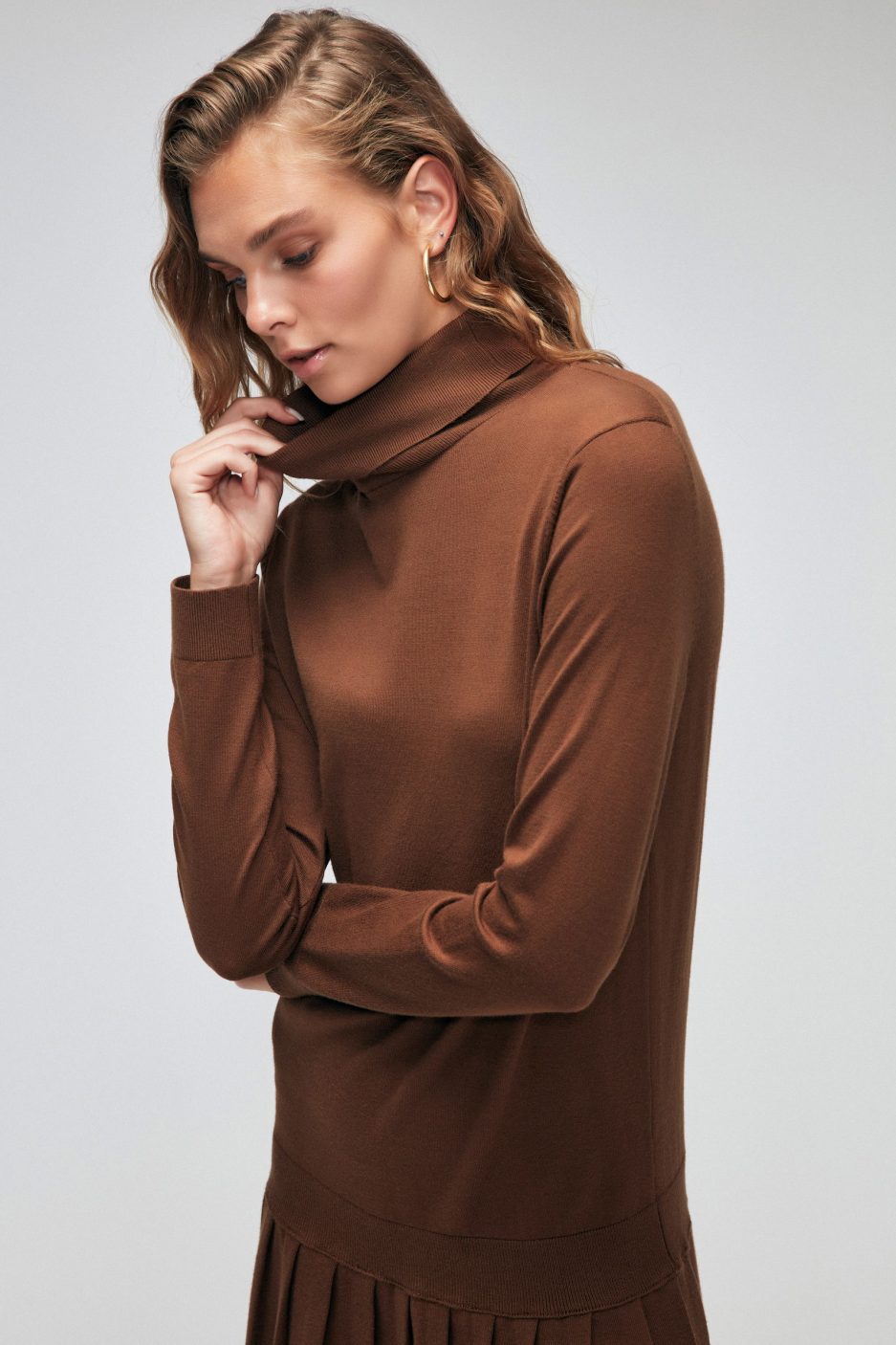 Платье трико с рюшами и воротником-слепом MAVI, размер L, длина 91 см, состав: 52% вискоза, 28% полиэстер, 20% полиамид