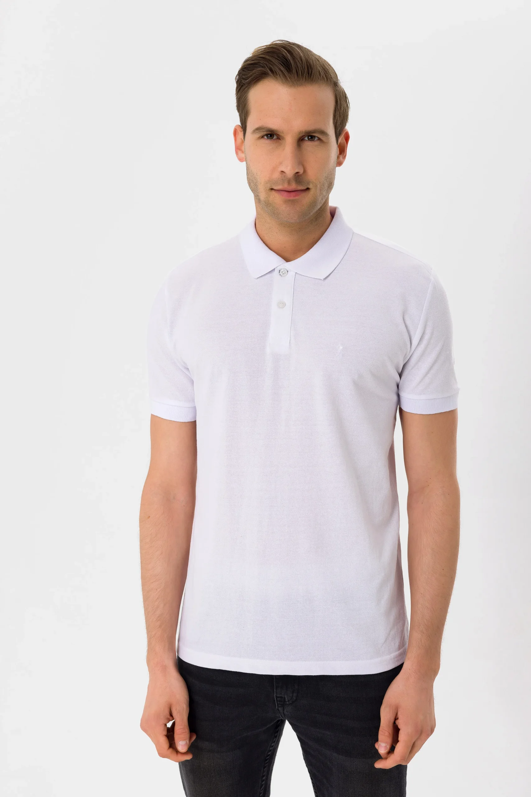 Поло-рубашка с коротким рукавом, армированный воротник, 50% хлопок, 50% полиэстер, белый, размеры XL, L, XXL, произведено в Турции