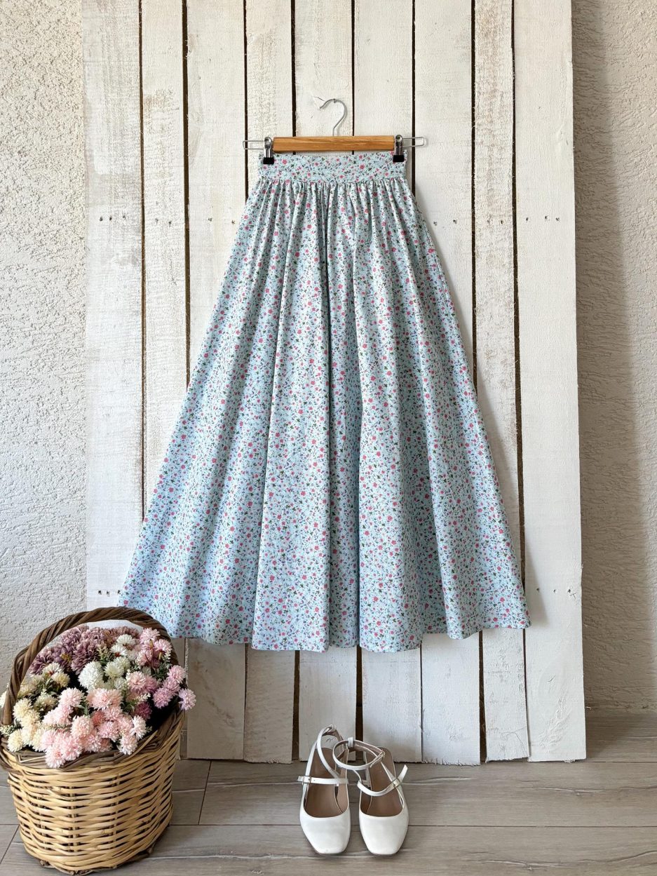 Розовая юбка с маленьким цветочным рисунком из поплина, длина 135 см, ручная стирка, не просвечивает, размер 36-46