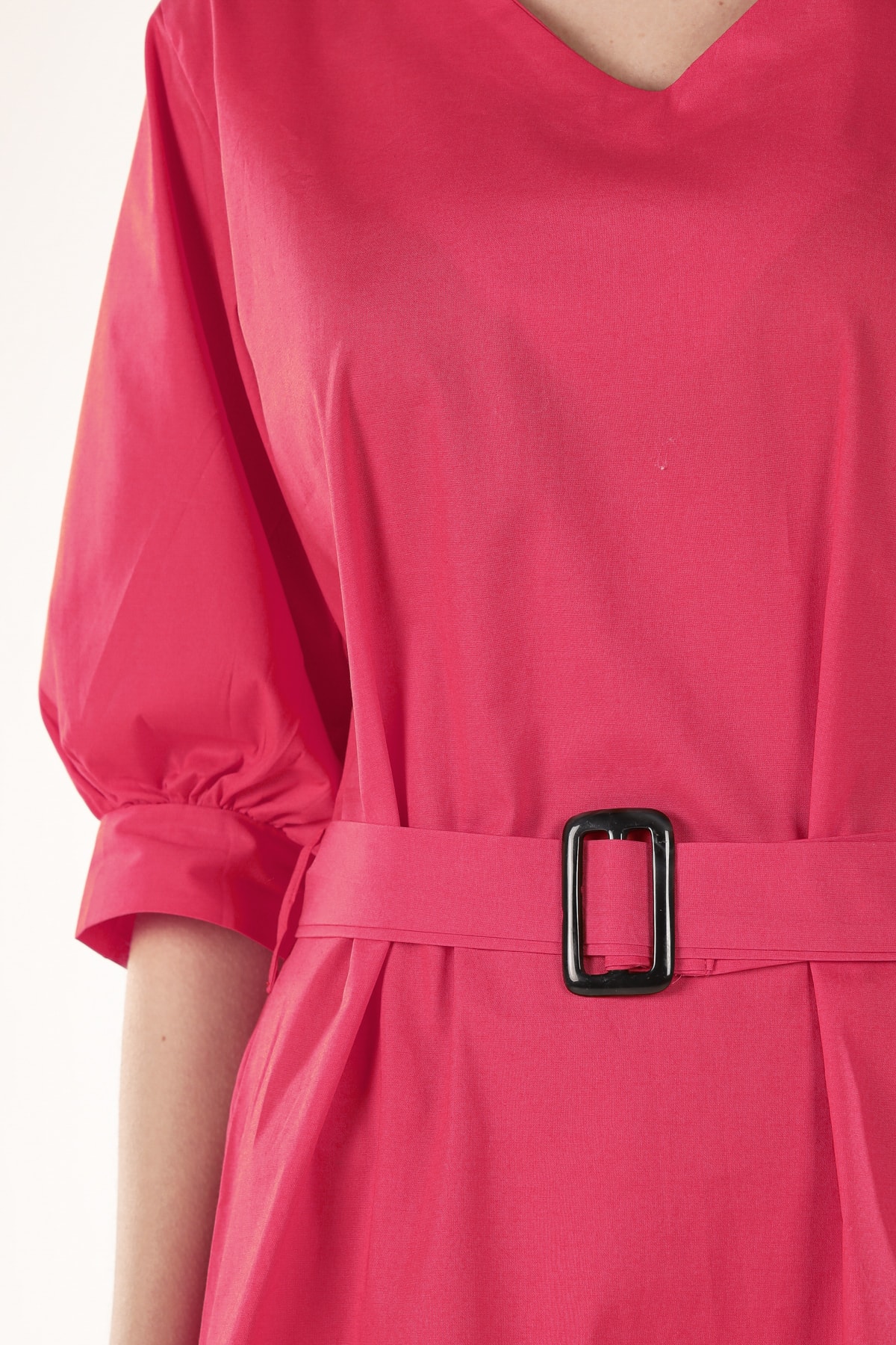 Розовое платье с V-образным вырезом и поясом, 100% хлопок, размер S, подходит для различных размеров, идеально для любого случая