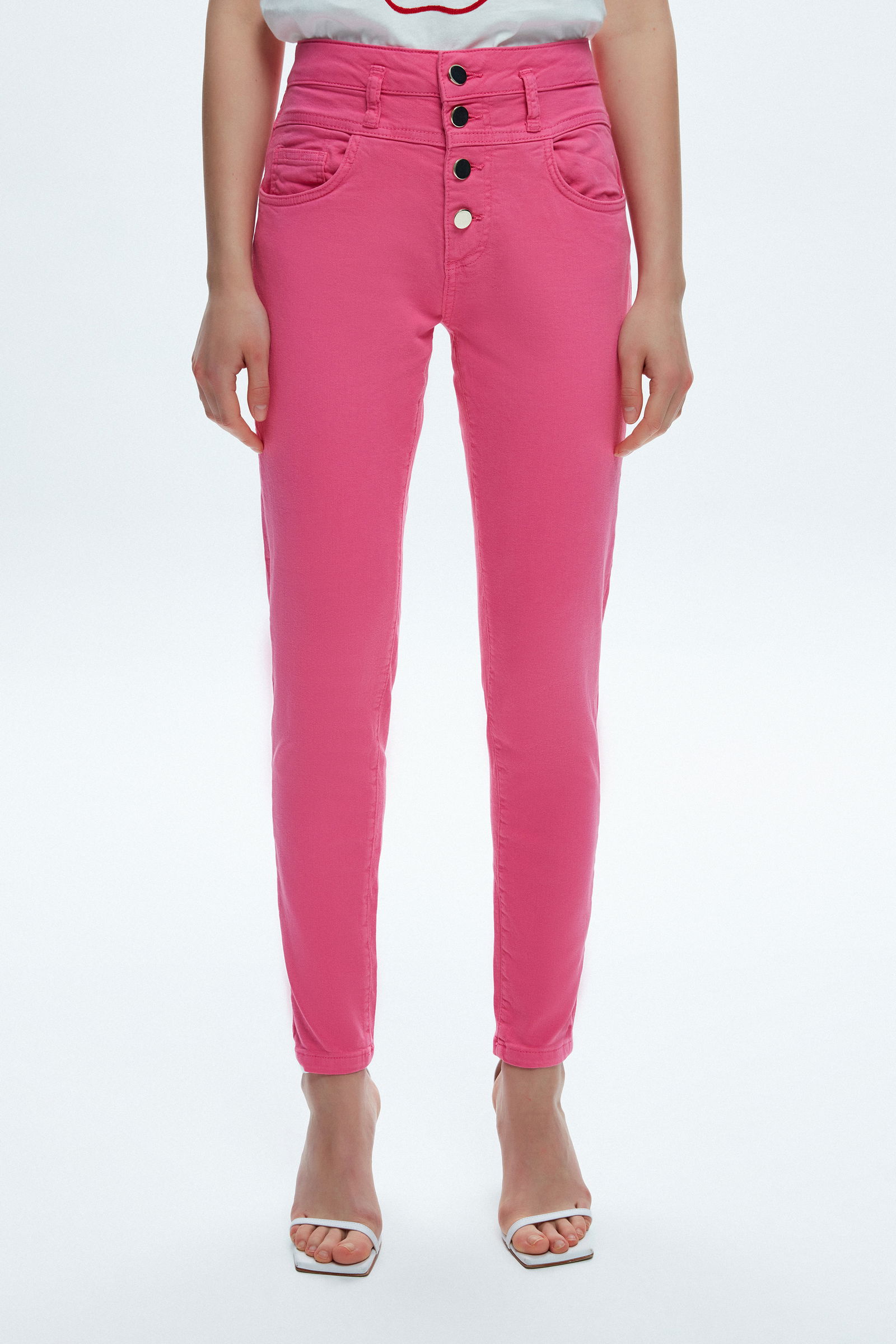 Розовые брюки с деталями пуговиц, приталенные, офисный стиль, 97% хлопок, 3% эластан, размеры S, L, XL, XXL