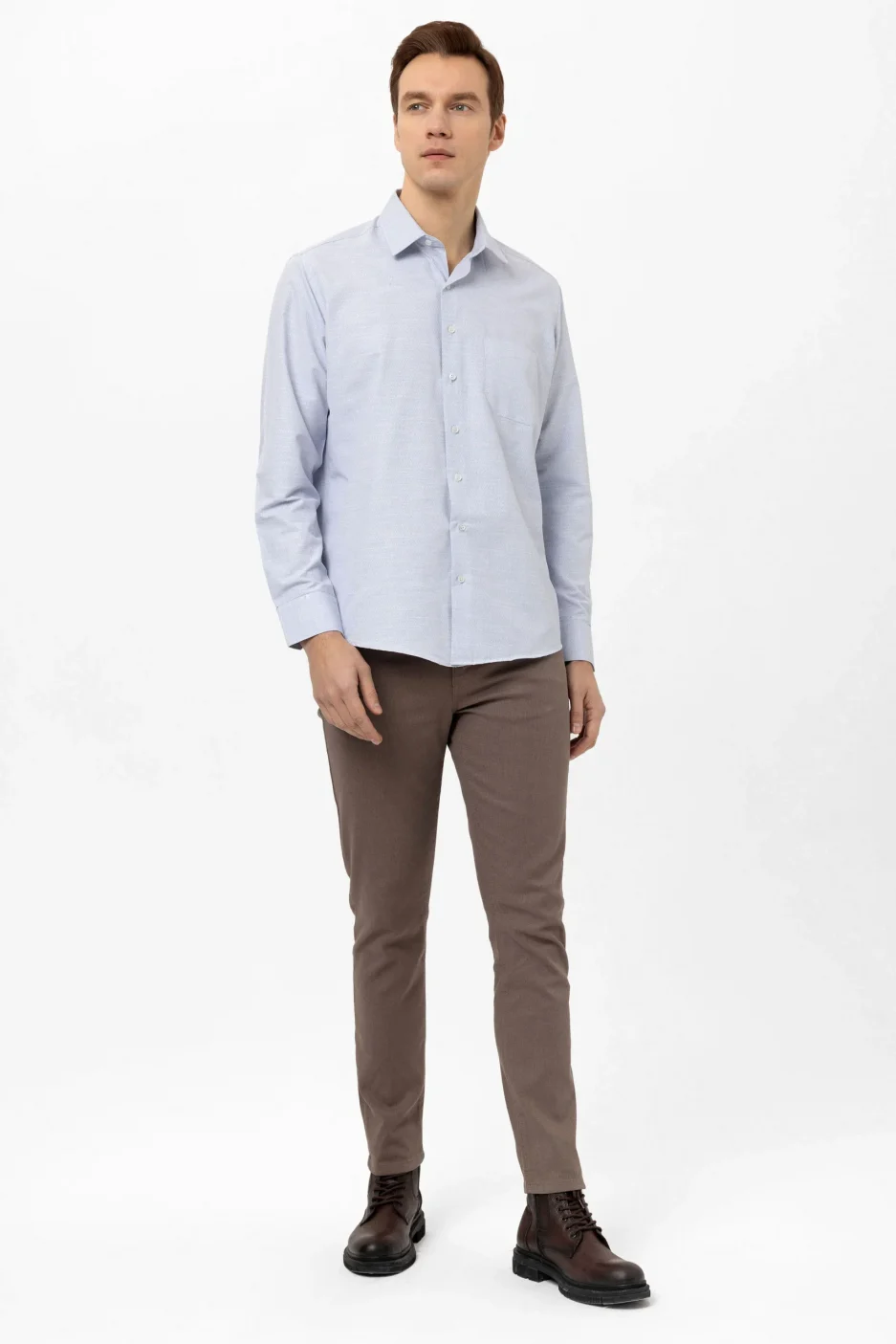 Рубашка с уголками, регулярный крой, армированная, 60% хлопок, 40% полиэстер, классический воротник, классический карман, цвет: ледяной синий