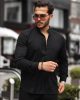 Рубашка с воротником-стойкой из оксфорда, длинный рукав, 100% хлопок, черный цвет, стильный и удобный выбор для повседневного и делового стиля
