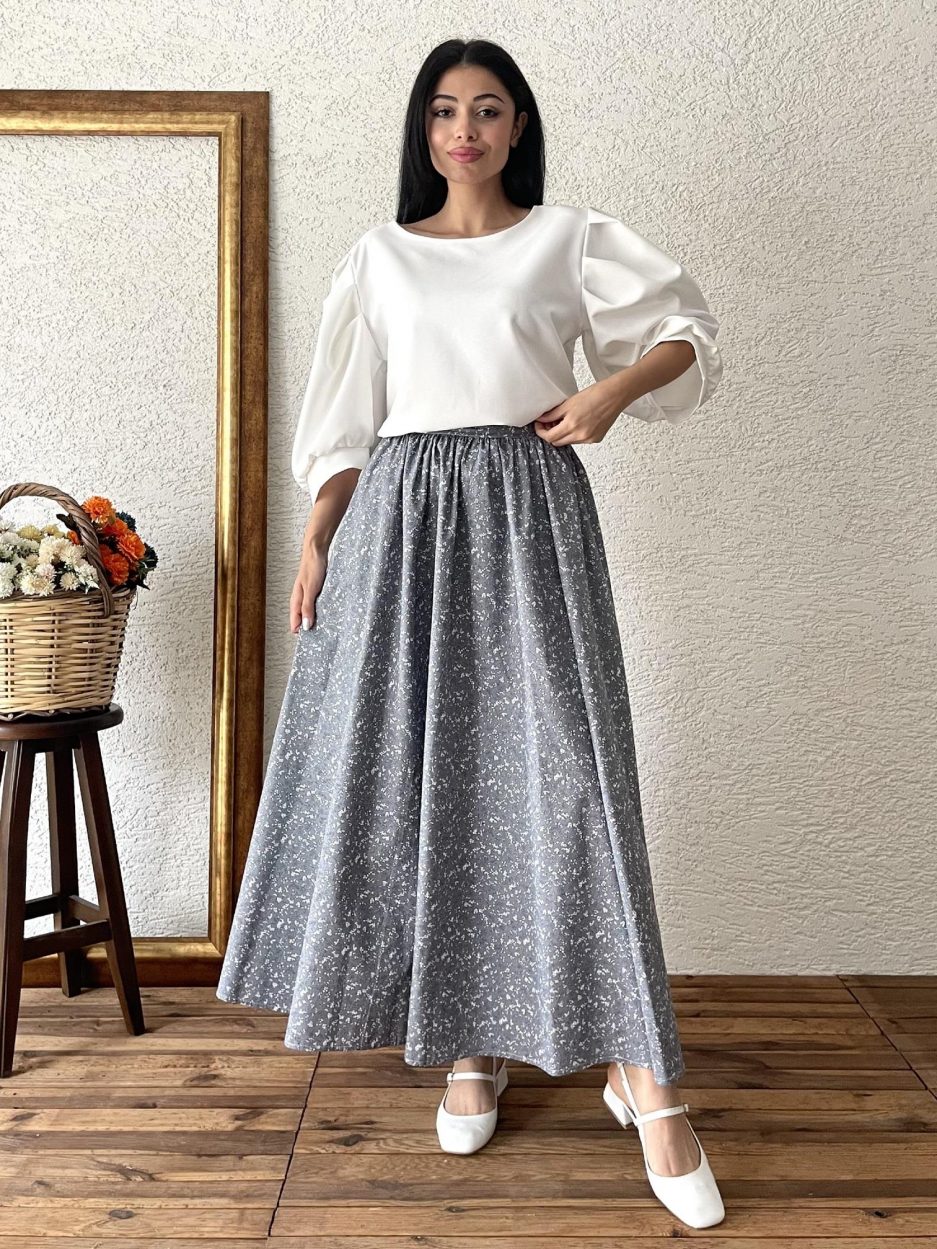 Серая поплиновая юбка-клош, стесненная посадка, длина 95 см, модели S, ручная стирка, не просвечивает, подходит для размеров 36-42