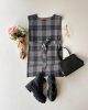 Серый клетчатый жилет с поясом, 80% полиэстер, размеры 36-50