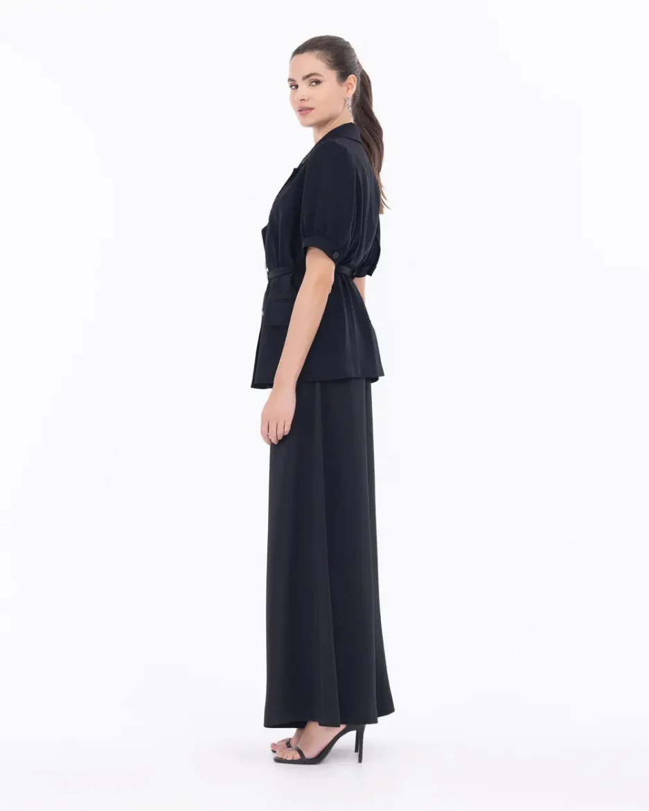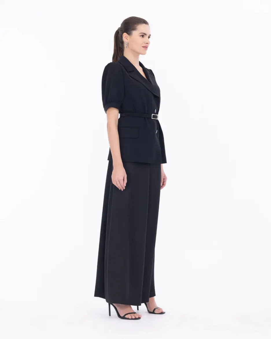 Шик жакет с короткими рукавами и поясом, универсальный вариант для вашего гардероба, идеально сочетается с классическими брюками