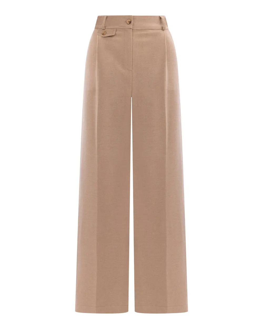 Широкие брюки-палаццо с карманами, светло-коричневые, удобные и стильные, идеальный выбор для современного гардероба