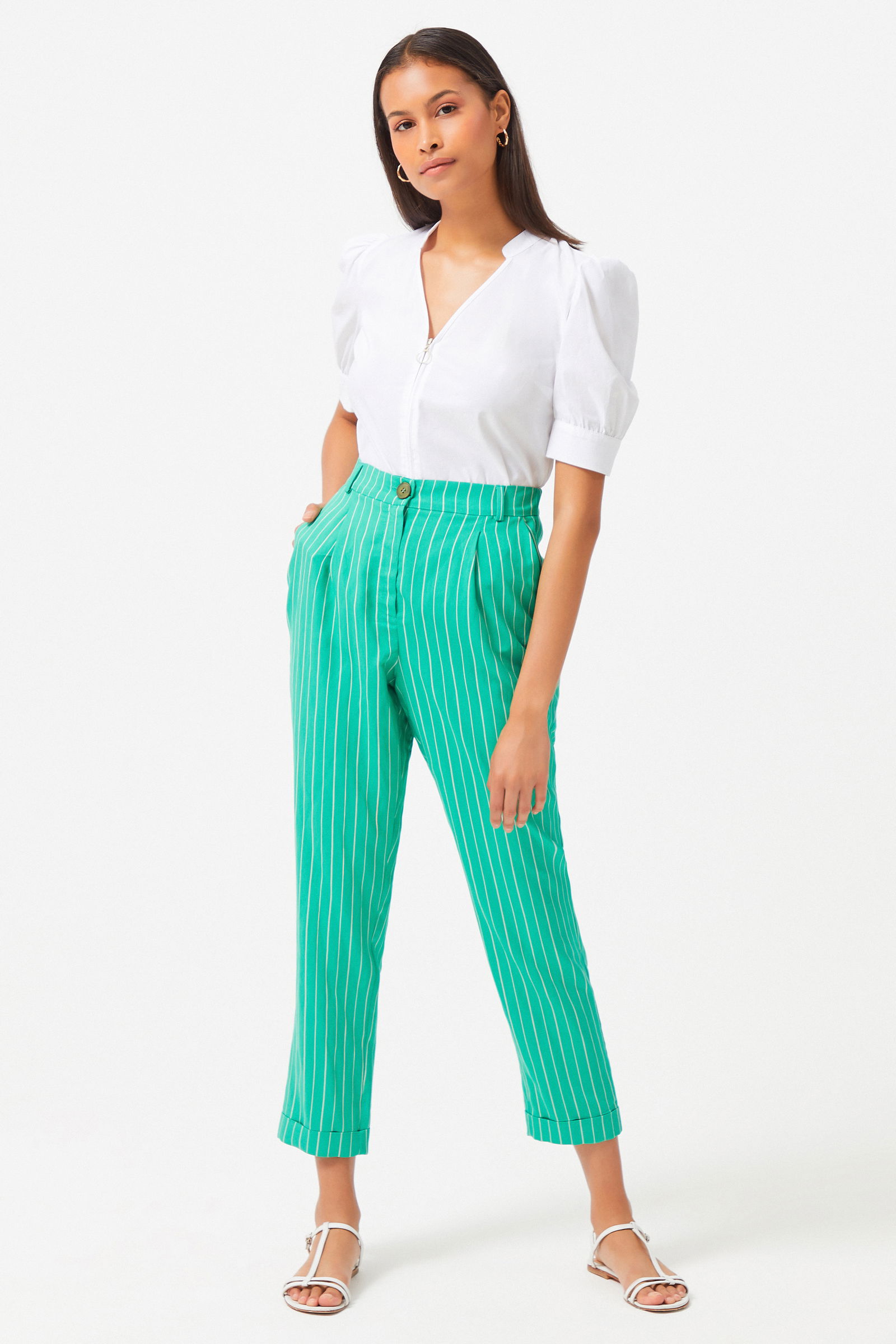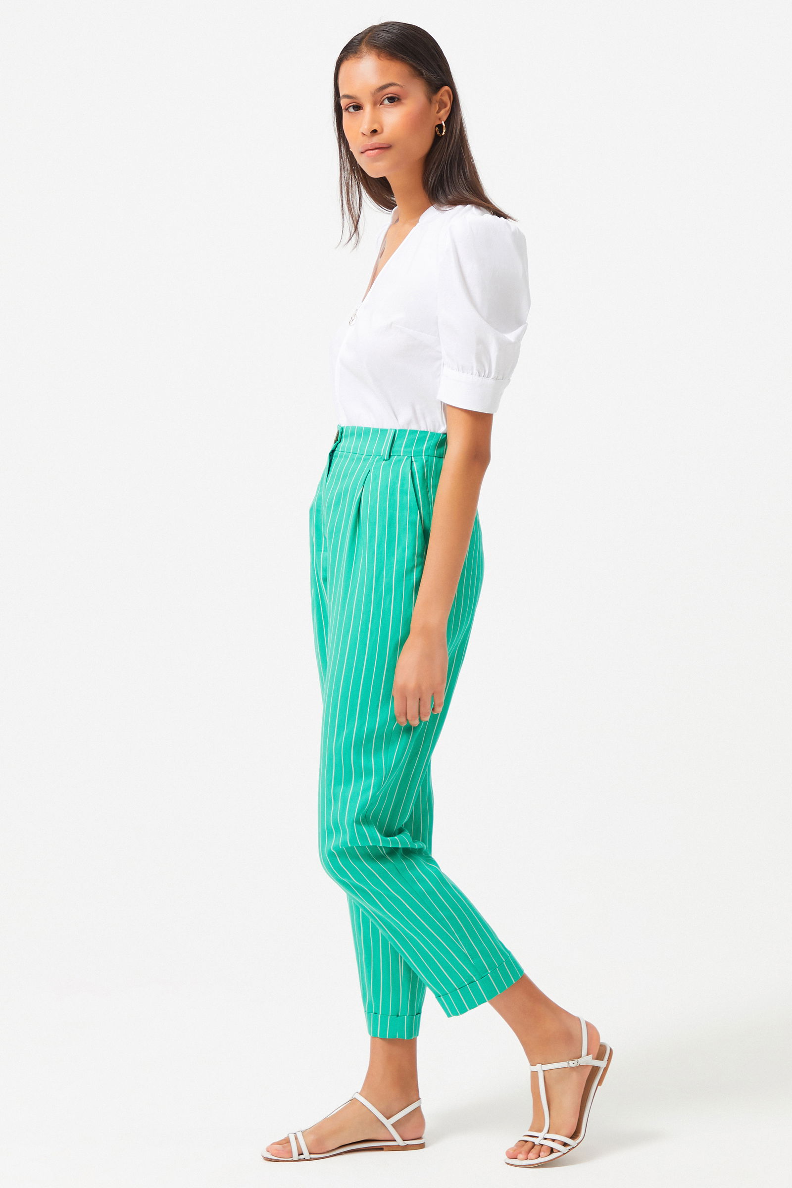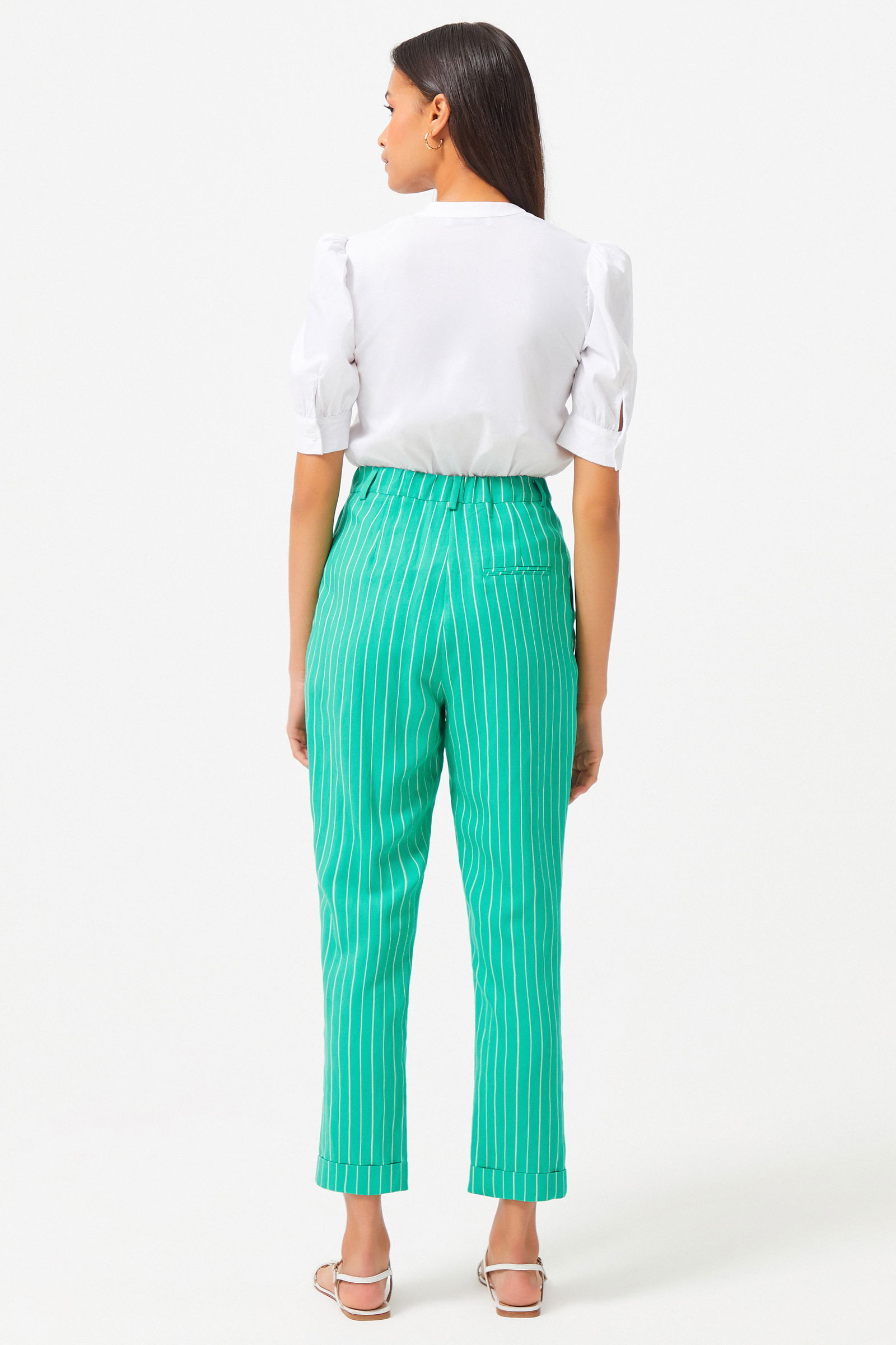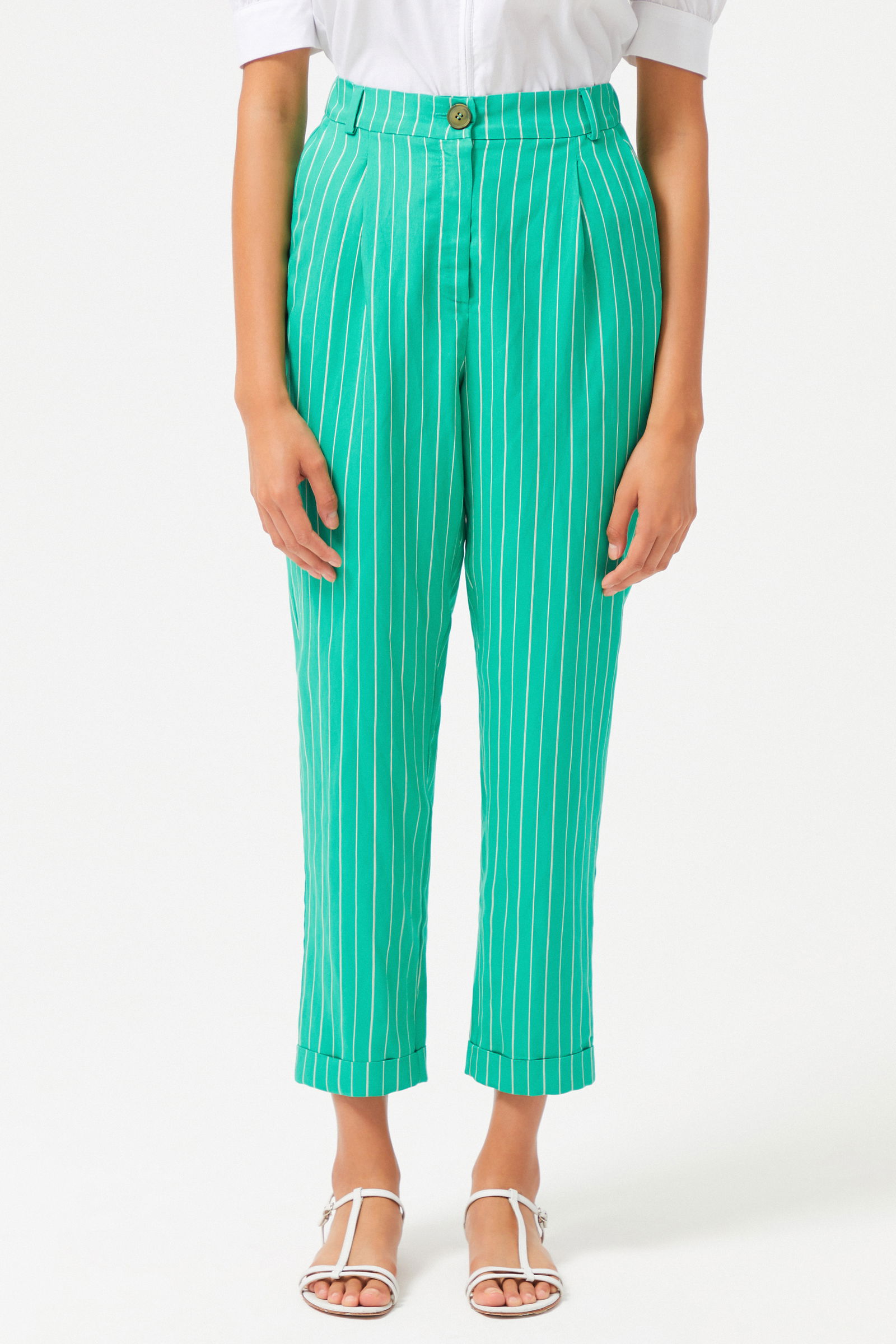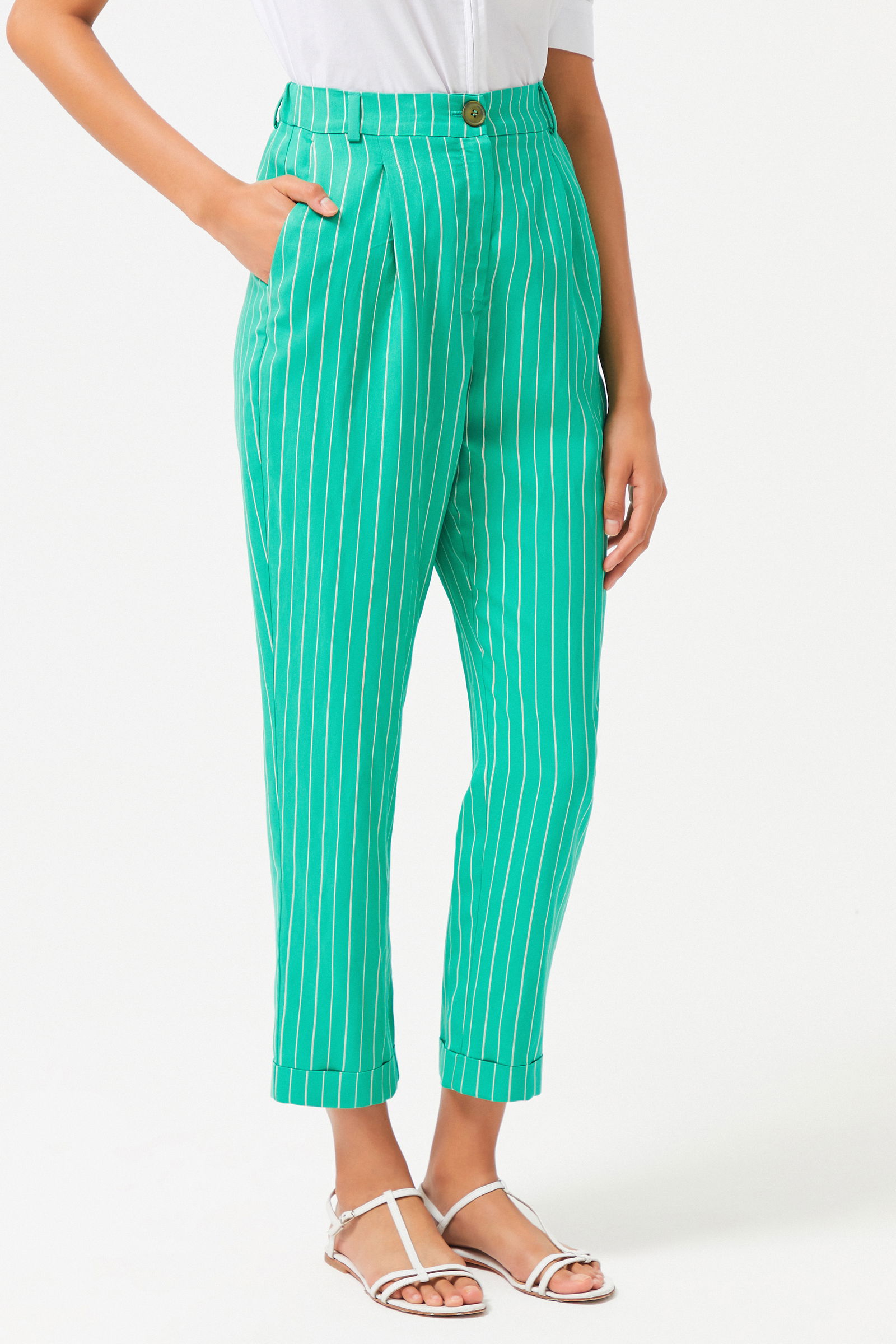 Штаны с полосками изумрудного цвета, двойная штанина, плиссированная деталь, ткань: 92% вискоза, 8% полиэстер, стиль: кэжуал