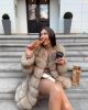 Шуба из лисьего меха с квадратными вставками Gloria(хаки)