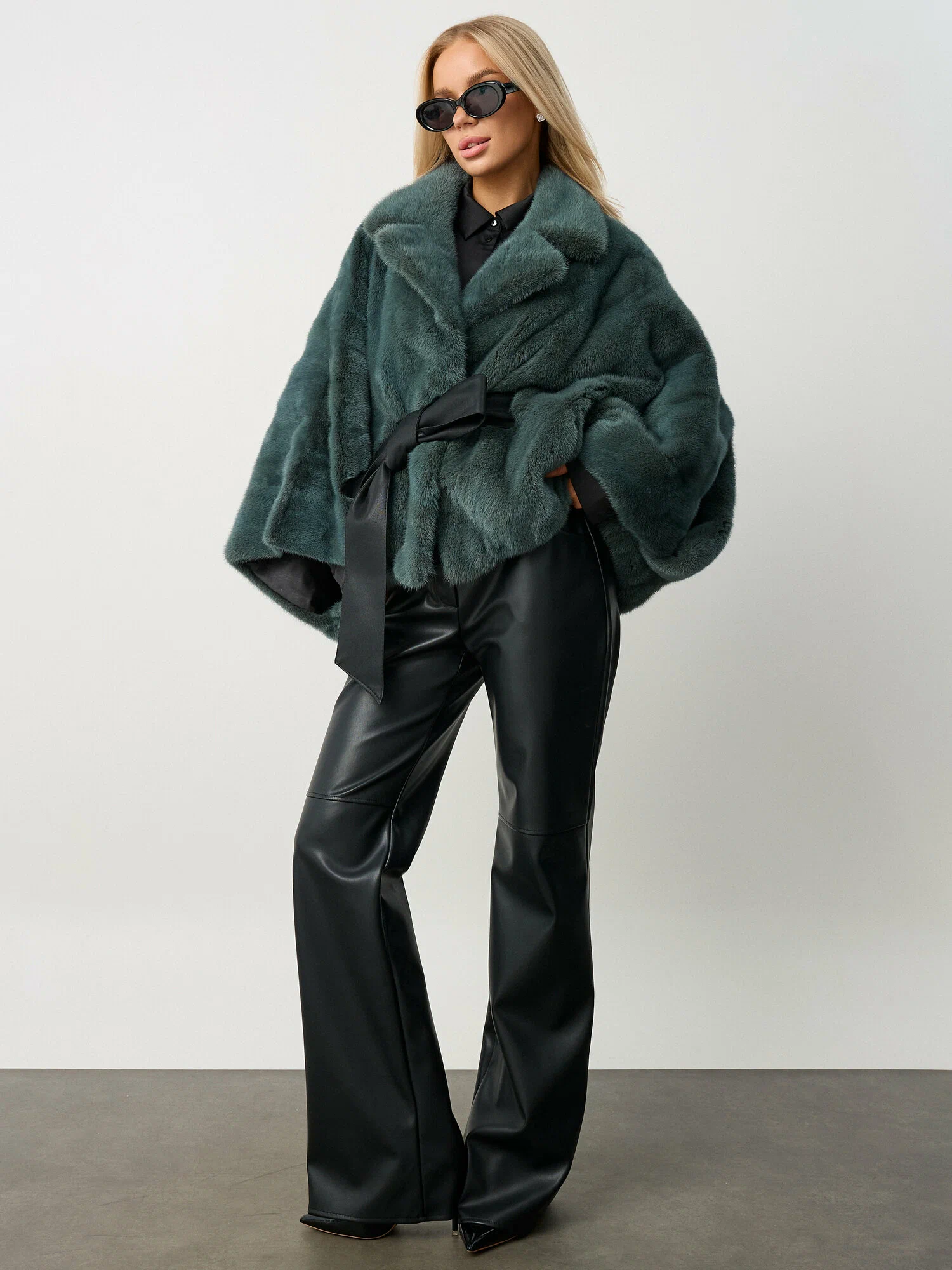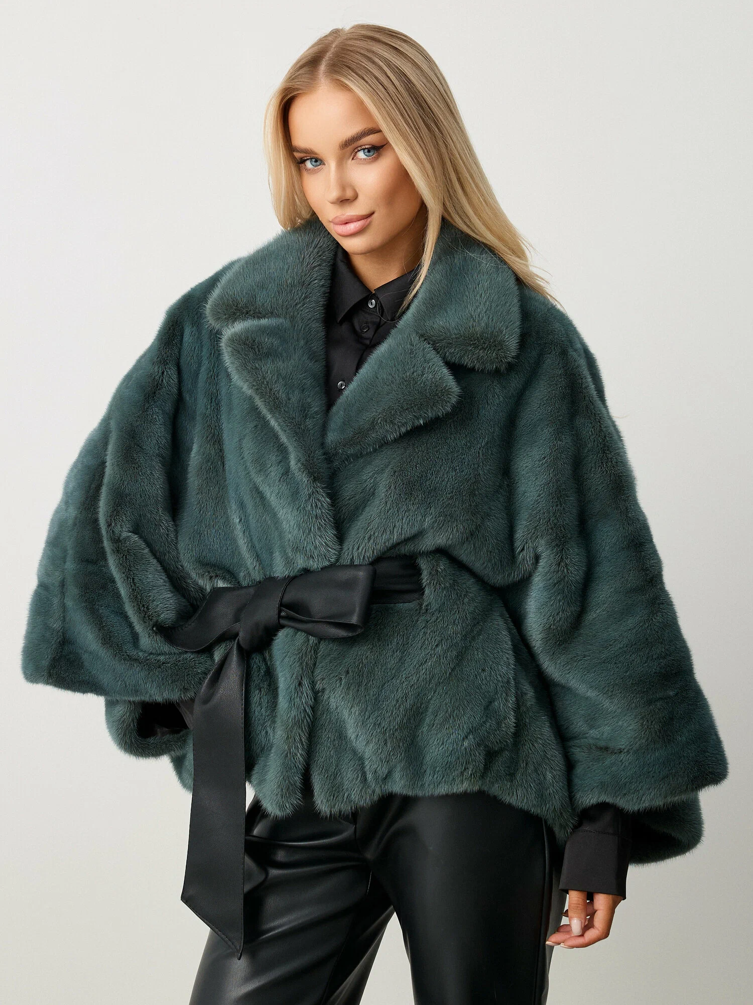 Элегантный пояс из эко-кожи подчеркнет талию, создавая женственный силуэт, а отложной воротник добавит шика и защитит от ветра в холодные дни.