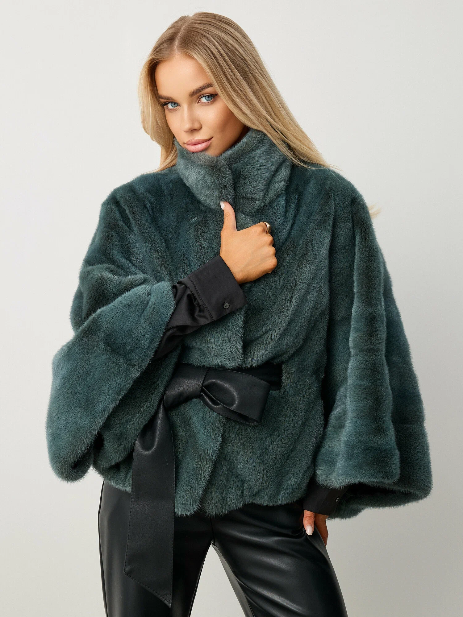 Размер универсален — от 42 до 54, длина по спинке составляет 60 см — идеальный баланс между практичностью и модой. Малахитовый цвет делает её уникальной и сочетаемой с любыми образами, а прорезные карманы дарят удобство и функциональность.