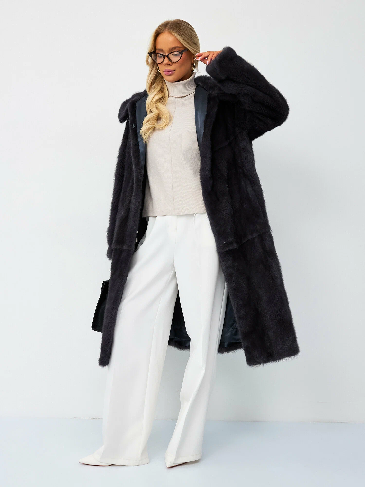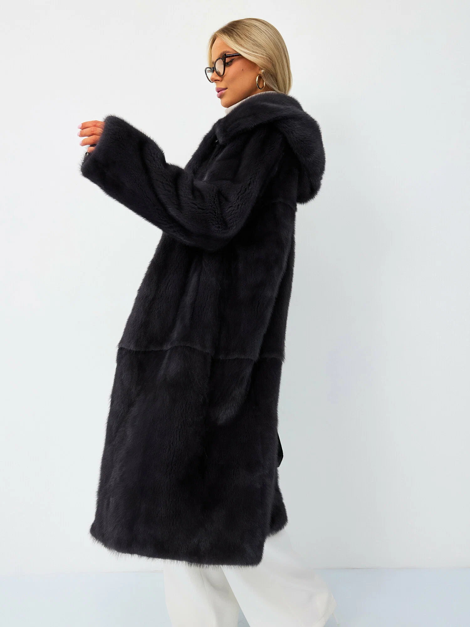 Натуральная норковая шуба в классическом графитовом цвете. Длинная зимняя шубка из меха норки — это модное и стильное изделие для женщин и молодых девушек. Цвет графит.