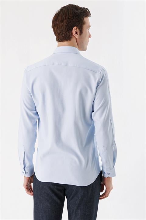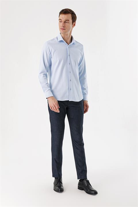 Синяя мужская рубашка Morven, жаккардовый узор, slim fit, 57% хлопок, 43% полиэстер, длинный рукав, без карманов