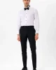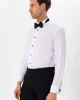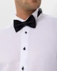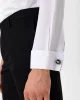 Слим-футлярная рубашка с манжетами, черная, 55% хлопок, 45% полиэстер, прямой крой, с воротником-стойкой, производство Турция