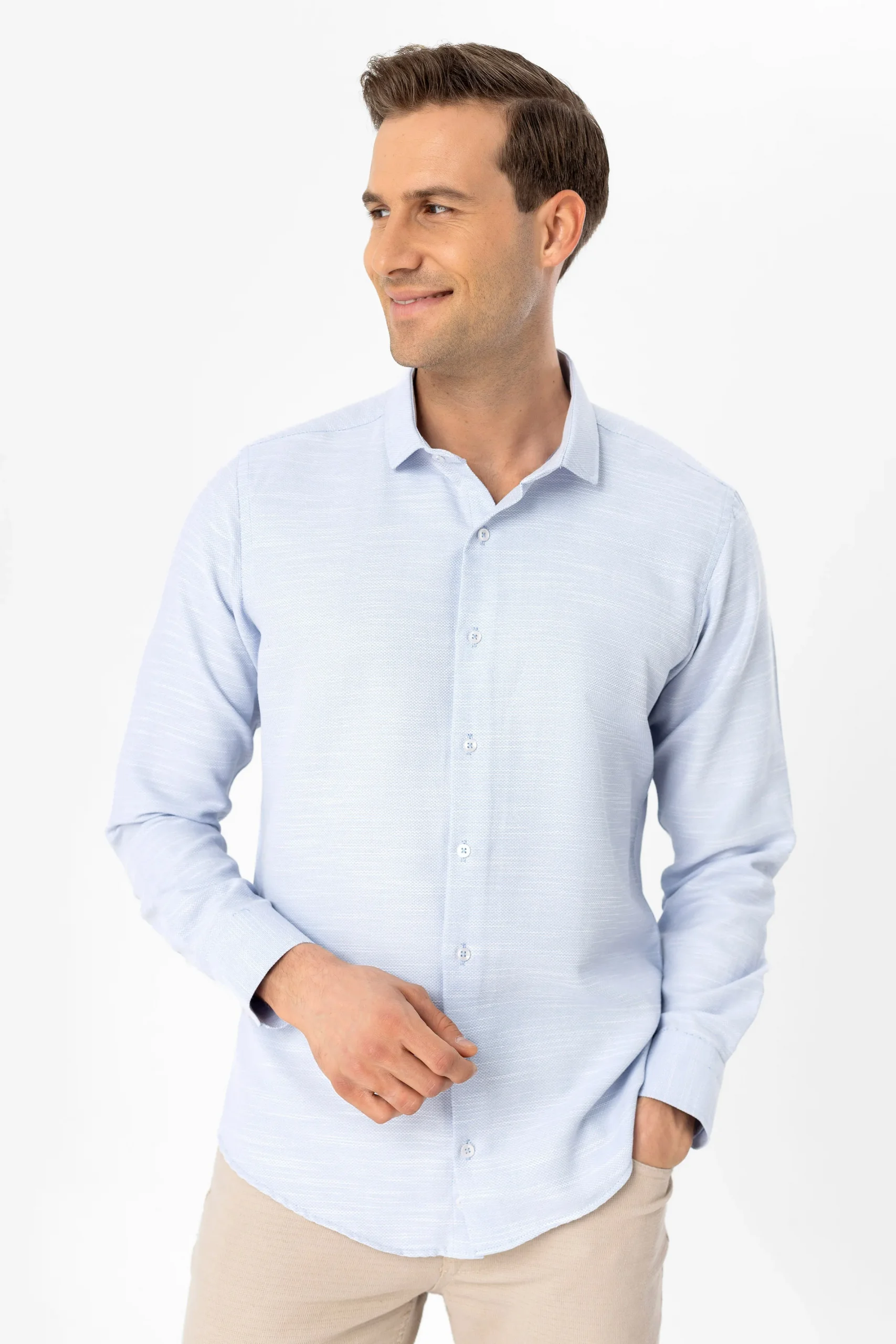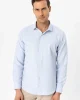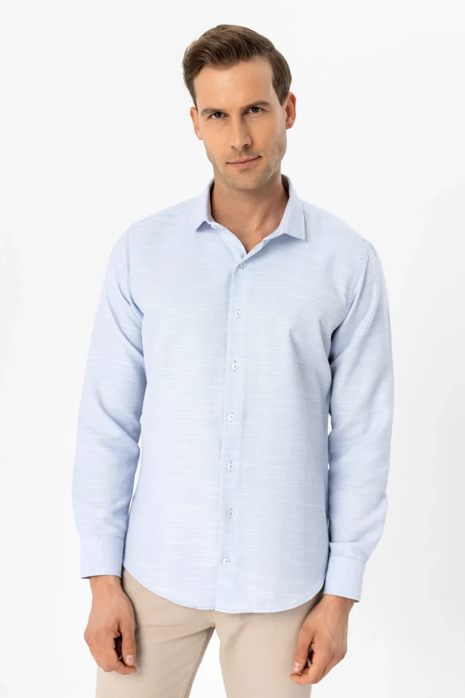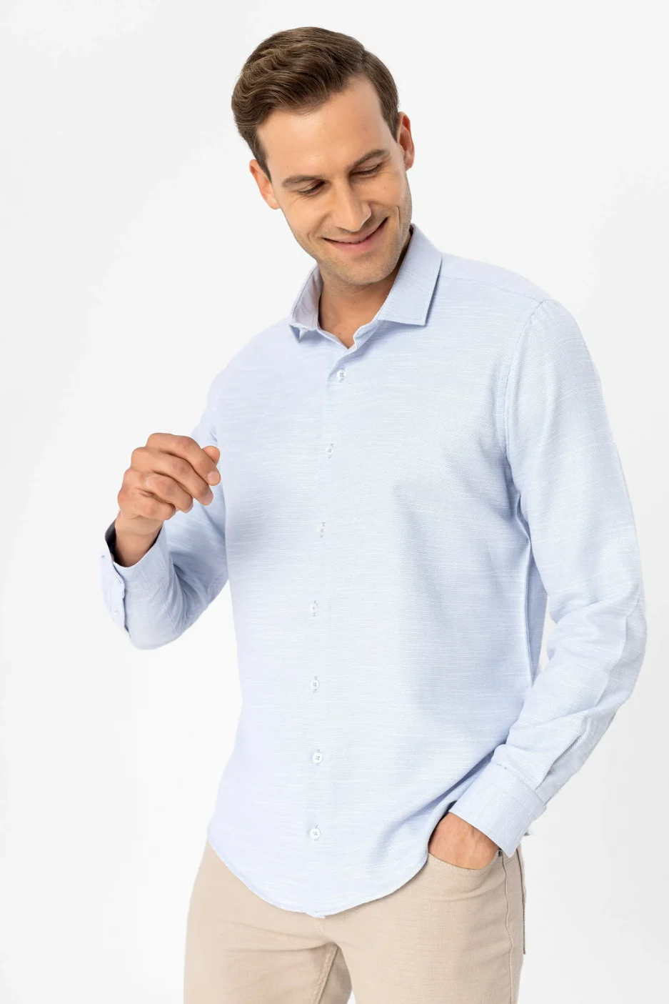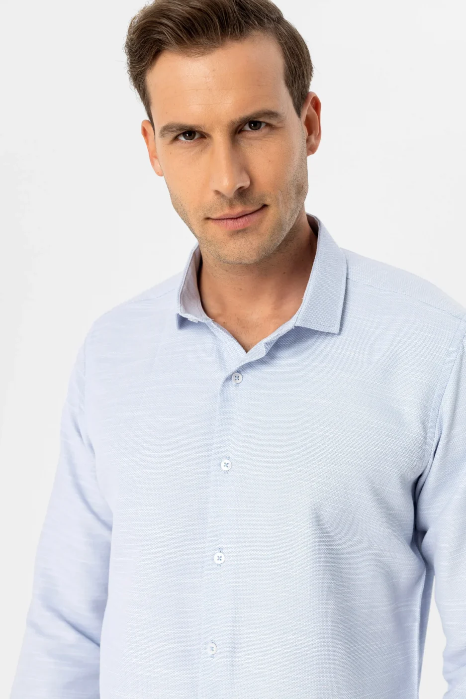 Слим-крой рубашка с уголками, классический воротник, 60% хлопок, 40% полиэстер, цвет: ледяно-голубой