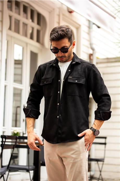 Суэдовая рубашка/куртка черного цвета, стильный и теплый, размерный ряд S-XXL, универсальное использование, легкая и мягкая текстура