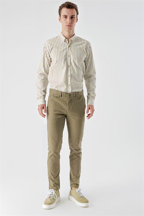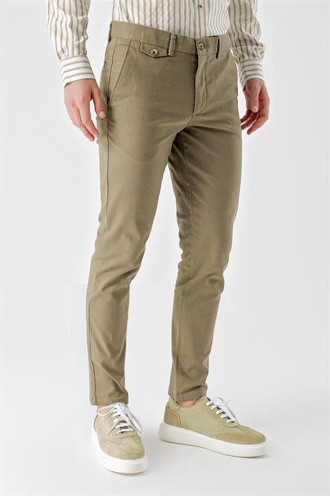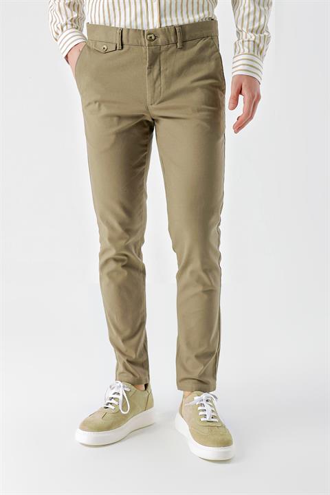 Светло-коричневые мужские брюки чинос slim fit из 98% хлопка и 2% эластана с боковыми карманами