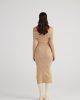 Трикотажное платье Tilda, бежевое, с мягкой текстурой, вырезом мадонны и разрезом, длина миди, размер XS