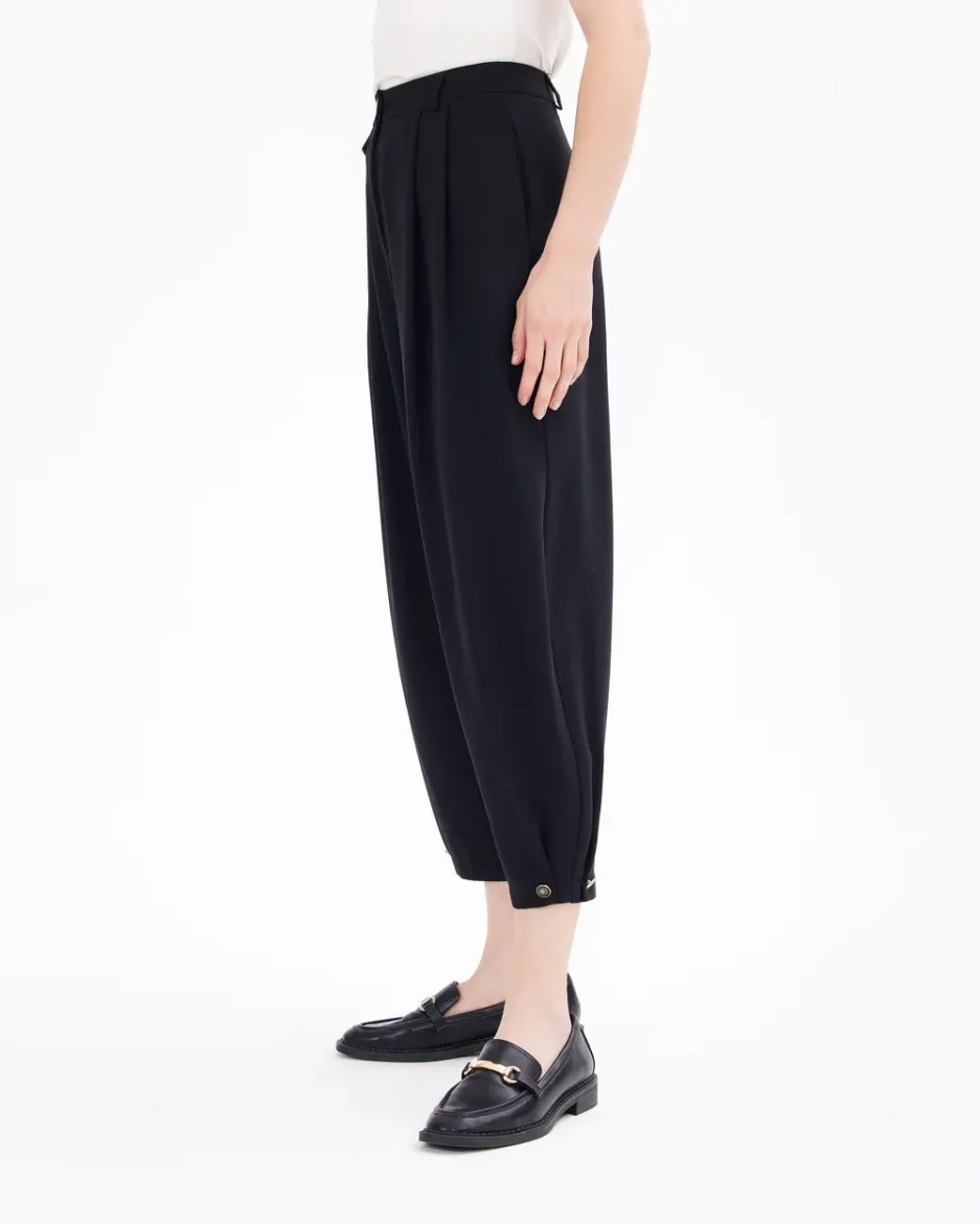 Удобные брюки до ankles с пуговицами и карманами, стильный крой, полиэстер, подходят для любого сезона. Размеры 36, 38, 40, цвет черный