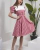 Винтажное красное платье с белым воротником и рукавами-воронками, 100% хлопок, размеры S-3XL, длина 100 см, ручная стирка рекомендована