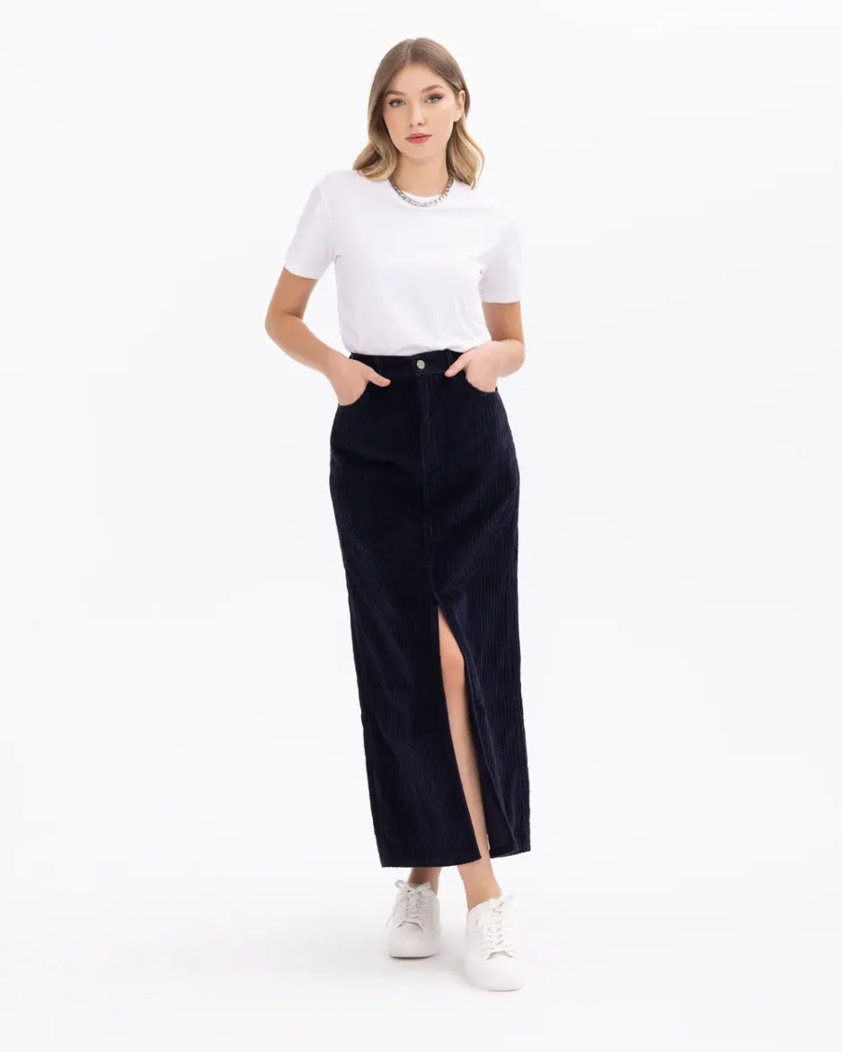 Юбка из вельвета с карманами и разрезом спереди, идеально сочетает стиль и комфорт, подходит для особых случаев и повседневного ношения