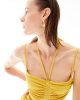 Желтое мини-платье с драпировкой, узкими бретелями и молнией, стиль: вечернее, 92% полиэстер, 8% эластан, без рукавов, размер S, XS, M, L