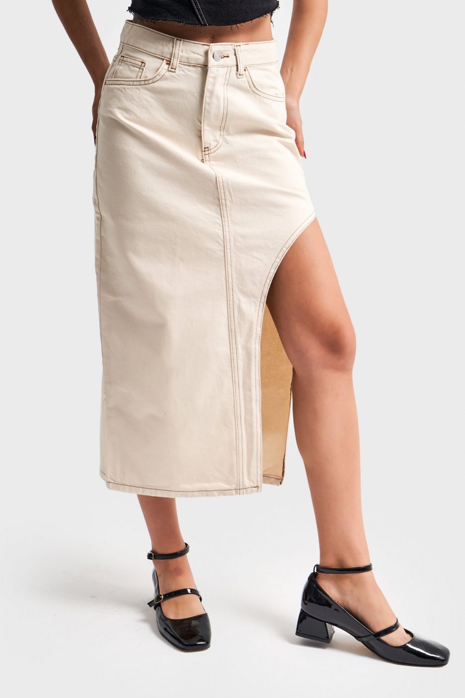 Модель представляет собой длинную юбку с боковым глубоким разрезом, выполненную из 100% хлопка. Этот предмет одежды сочетает в себе стиль и комфорт, подчеркивая женственность и элегантность. Юбка облегает фигуру, создавая изящный силуэт, который подходит для различных мероприятий. Универсальная длина юбки позволяет гармонично сочетать ее с разнообразной обувью.Компания İTS BASİC предлагает данную юбку, предназначенную для современных женщин, стремящихся выделяться. Благодаря высококачественному хлопковому материалу, юбка обеспечивает удобство в носке и долговечность. Модель идеально подходит как для повседневной носки, так и для более нарядных случаев, успешно подчеркивая индивидуальность каждой женщины.