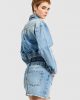 Женская джинсовая бомбер-куртка с ярким каменным декором, модель Snow, 100% хлопок, размер 36-42