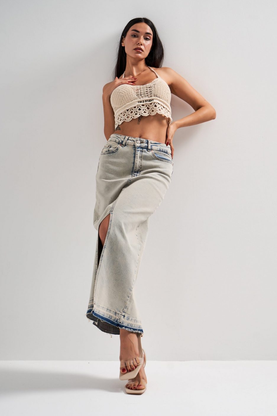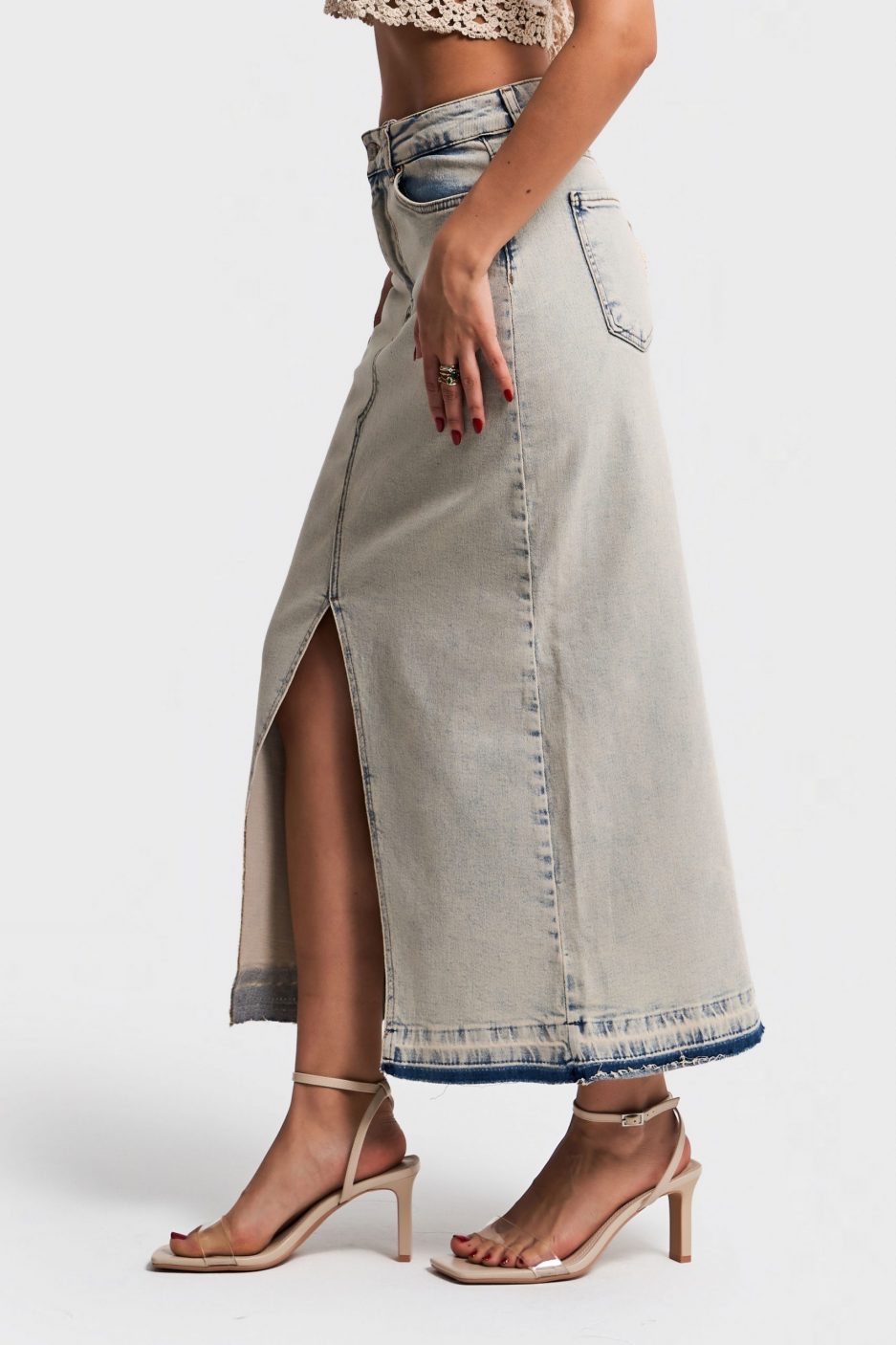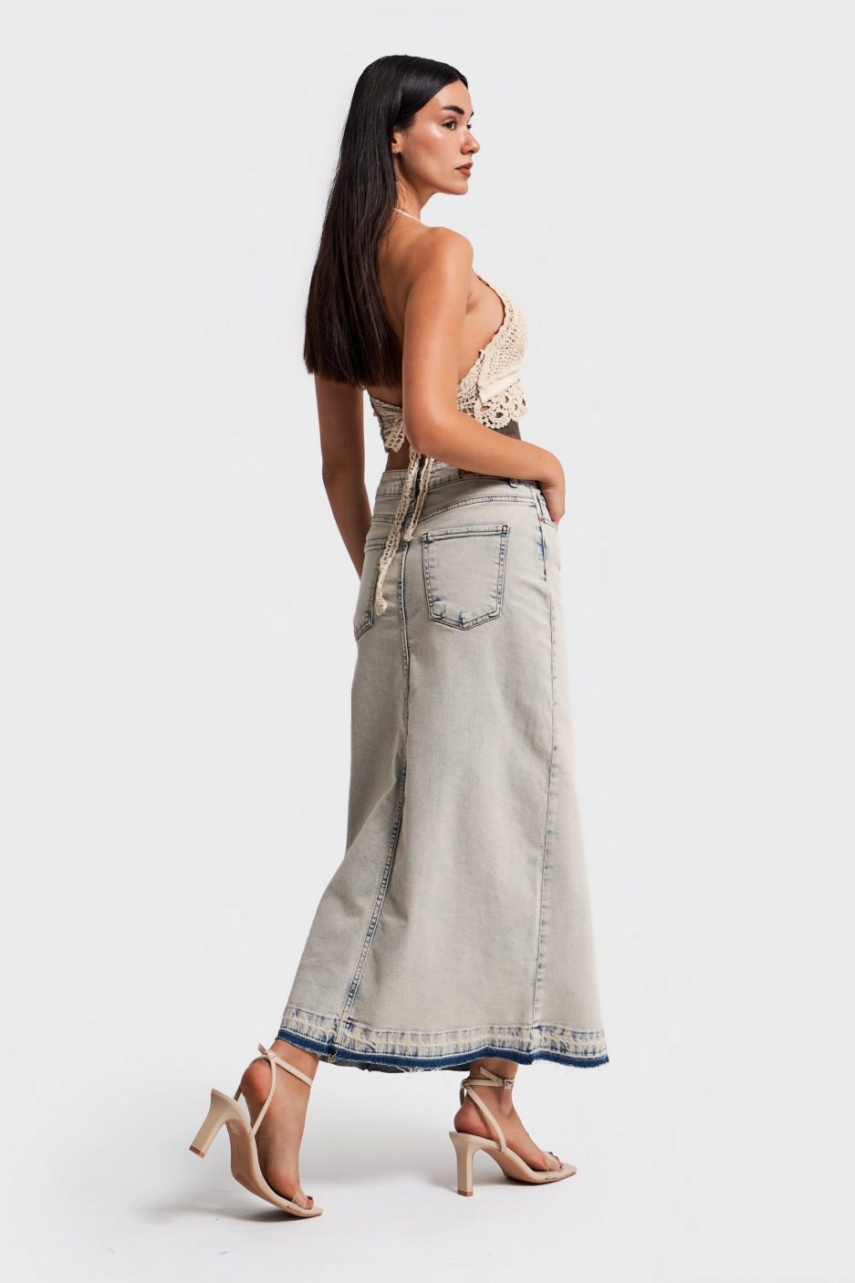 Женская макси юбка из натурального денима, эластичная лайкра, натуральный цвет, размеры 34-42