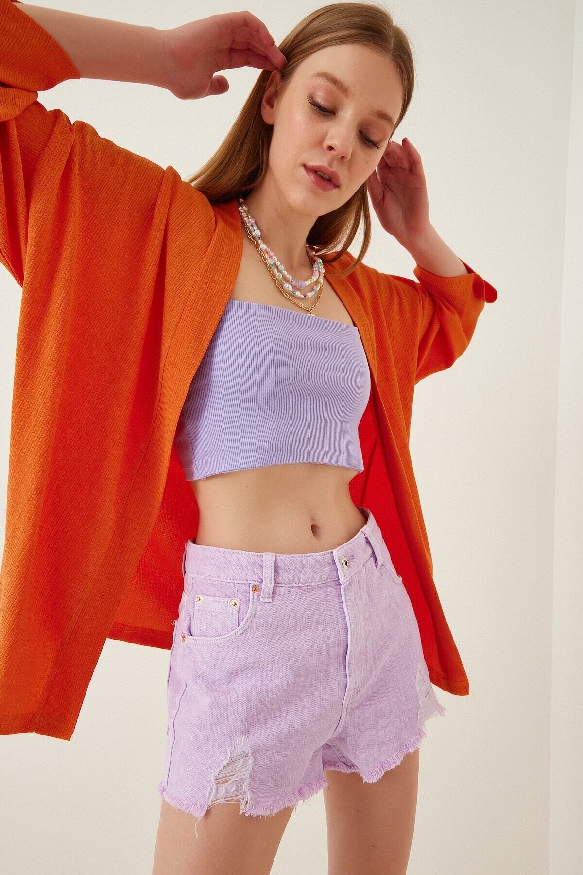 Женская оранжевая куртка с открытым передом и текстурированным воротником, легкая и стильная, размер 36, из полиэстера с ликрой