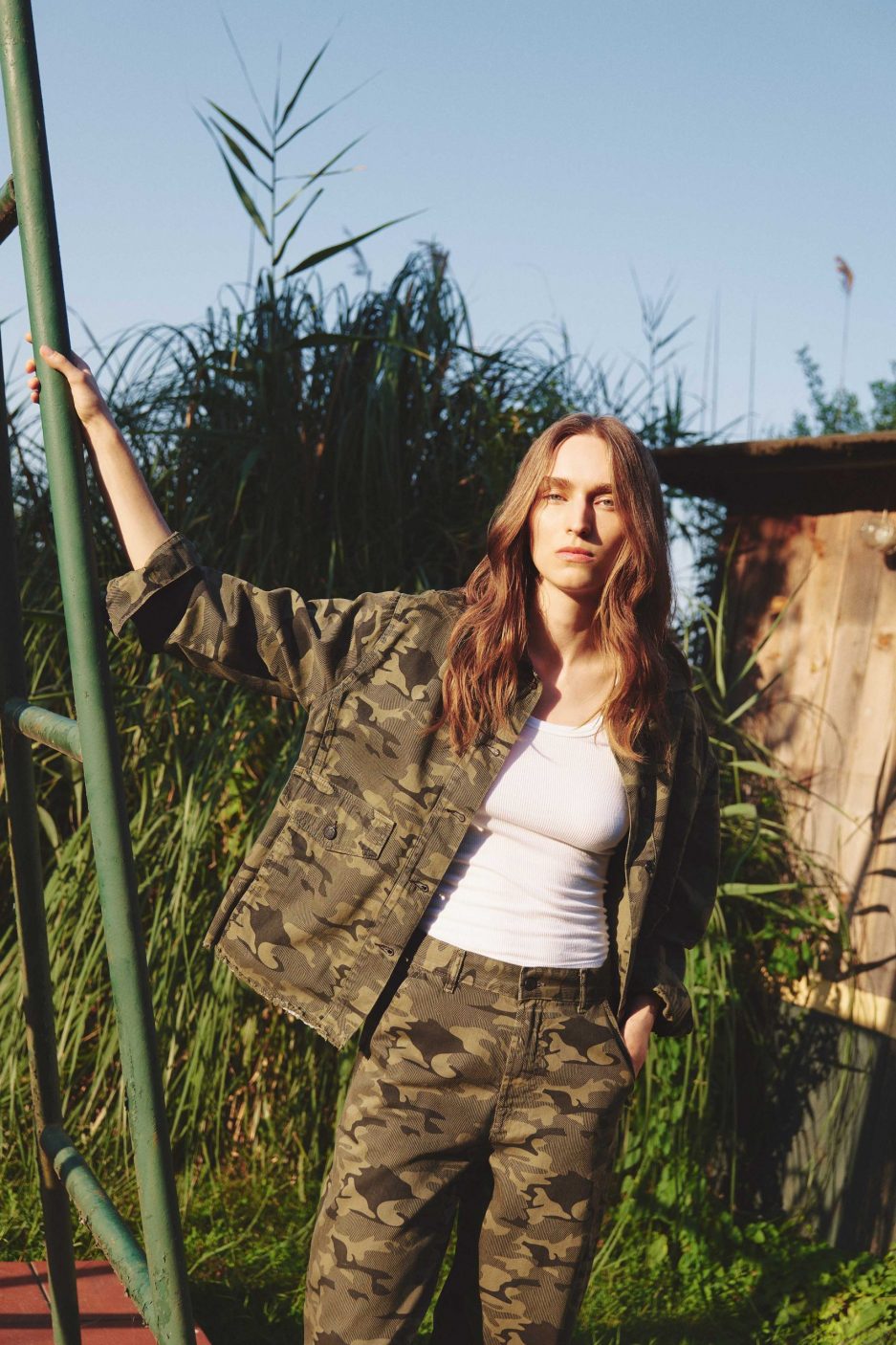 Женская оверсайз куртка с камуфляжным рисунком, 100% хлопок, стандартная длина для всех размеров, доступна в размерах 34-40