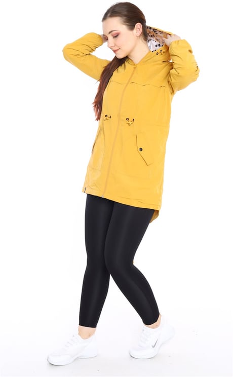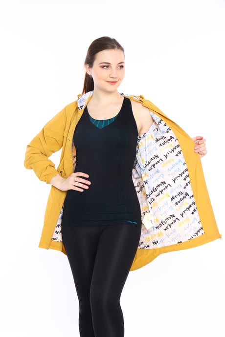 Женская ветровка Escetic горчичного цвета с капюшоном и подкладкой, легкая, водоотталкивающая, 2 кармана, идеальна для повседневного стиля
