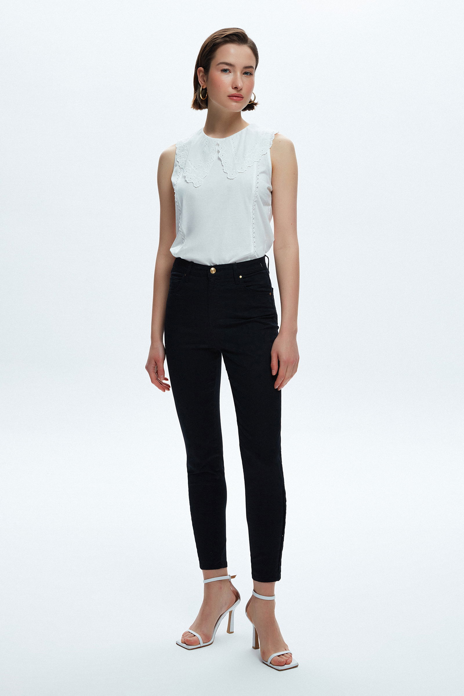 Эти стильные брюки с деталью в виде косы представляют собой идеальный выбор для женщин, стремящихся к комфорту и элегантности. Изготовленные из высококачественного материала, состоящего на 94.5% из хлопка и 5.5% из эластана, они обеспечивают отличную посадку и свободу движений. Брюки имеют высокую талиевую линию и узкие штанины, что делает их универсальным вариантом для повседневного гардероба.Компания Queenstore предлагает этот привлекательный предмет одежды, который отлично сочетается с различными верхними частями. Подходят для различных случаев, они легко комбинируются с кроссовками или элегантными туфлями. Эти брюки станут основным элементом стильного образа, позволяя ощущать уверенность и комфорт в любой ситуации.