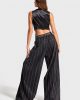 Женские черные брюки палаццо с блестящими камнями, модный дизайн, состав: 64% нейлон, 32% вискоза, 4% эластан