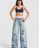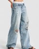 Женские джинсовые брюки с разрезами в цвете гринкест, размер 34-42, стандартная длина, 100% хлопок, стильный и удобный дизайн