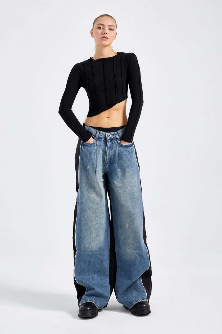 Женские джинсы паладо из двухцветного денима с уникальным дизайном, животик 34, стандартная длина для всех размеров