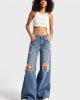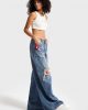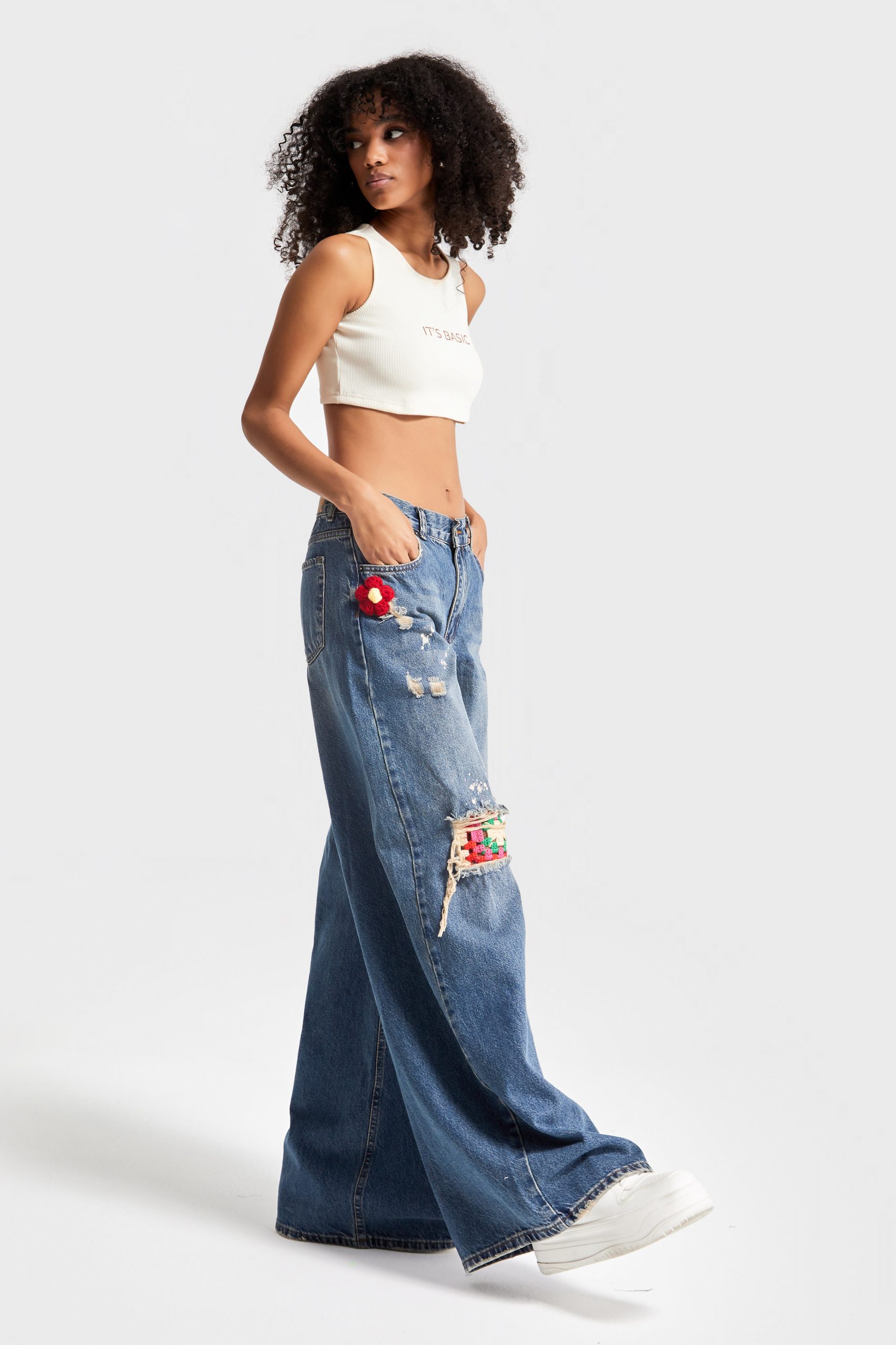 Женские джинсы палаззо с этническим рисунком, цвет: джинсовый, размеры: 34-42