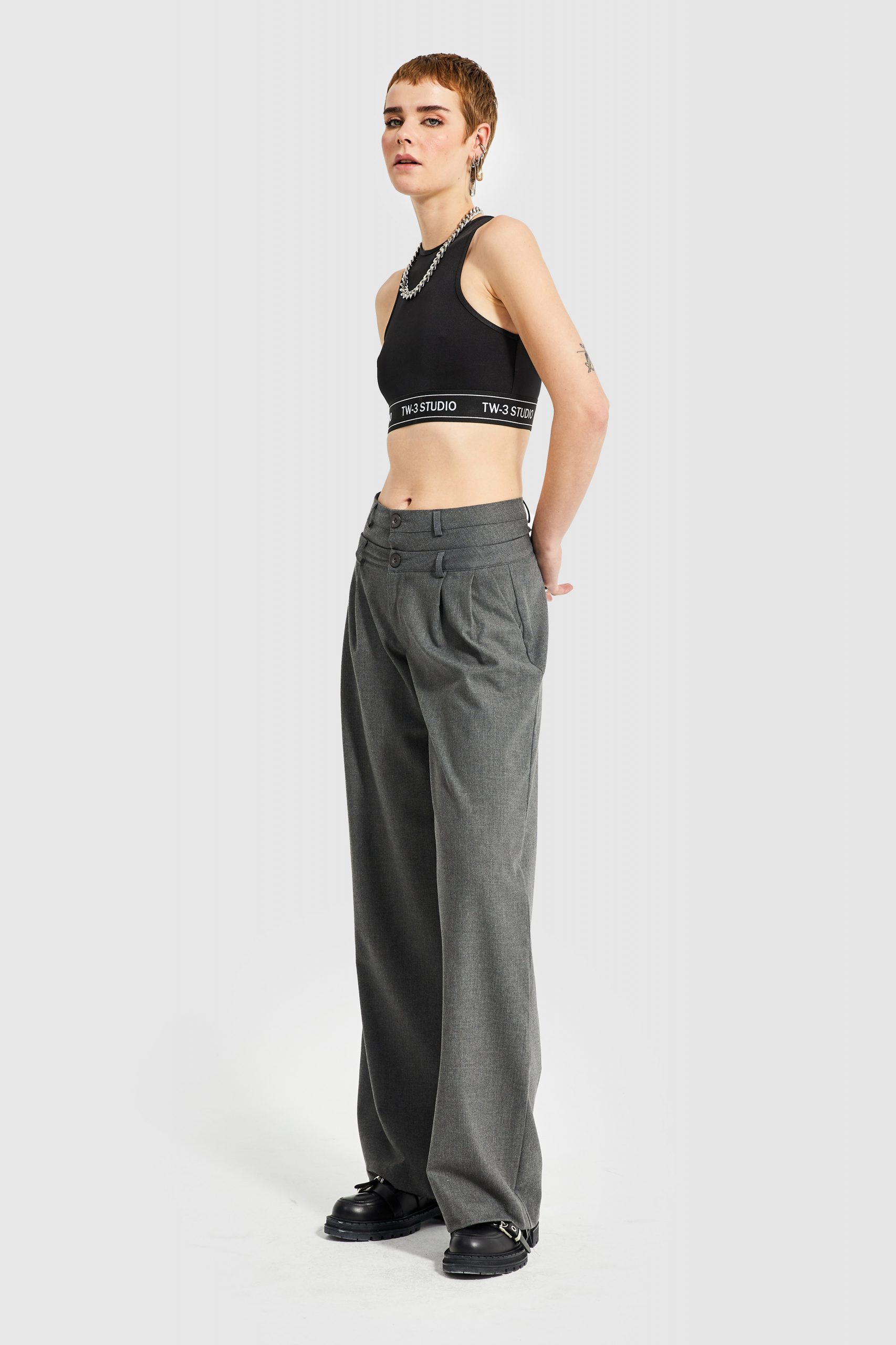 Женские палаззо брюки антрацитового цвета с двумя ремнями, идеально сидящие на фигуре, легкие и стильные для любого случая