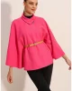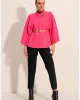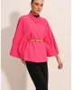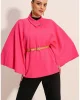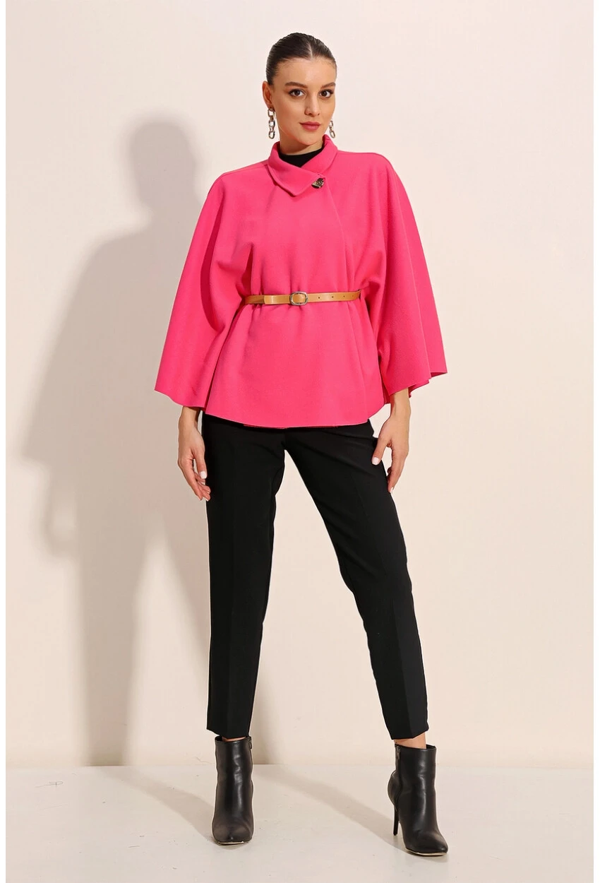 Женский фуксиевый пончо с воротником и поясом, стандартный размер, 90% полиэстер, 10% хлопок, размер 34-42, длина 63 см