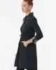 Женский темно-синий тренчкот с карманами и сборкой на талии, подкладка, длина 94 см, размеры 36-46, легкий и стильный