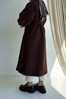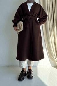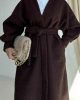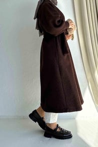 Женское демисезонное пальто с поясом в стиле teddy коричневого цвета для зимнего сезона