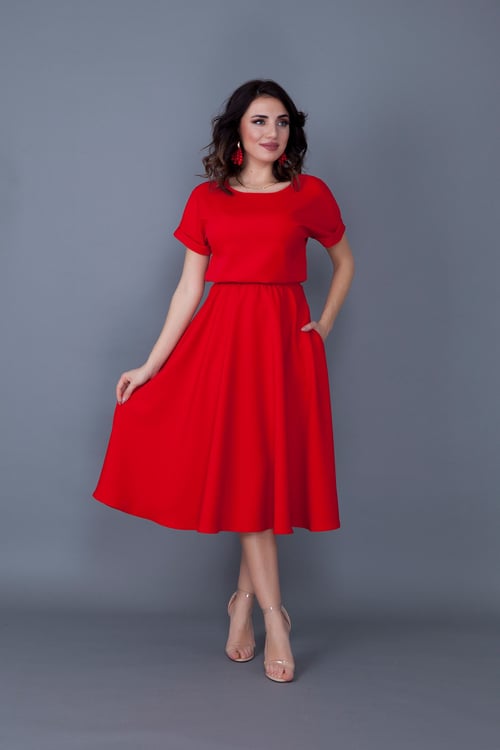 Женское короткое платье миди с эластичным поясом, красное, 16 цветовых вариантов, мягкая ткань, размеры от XS до 7XL